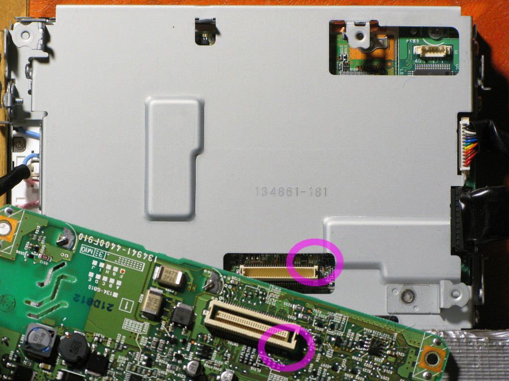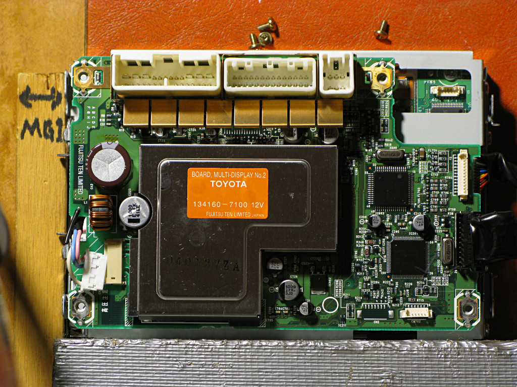 [A third local potential customer brought me the entire car one day, but a quick look at the hairline crack all the way across the glass under the touchpad surface told me she had a very different problem. I pointed her toward Steve for a replacement unit with the suggestion that the screen itself might be able to swap between NAV and non-NAV equipped units; I don't know if that worked out or not.] In the process of disassembling subsequent units, I noticed another aspect of how they're are put together that could have contributed to the problem. I took the opportunity during my second "professional" fix to try documenting this carefully and offer a possible preventive measure that if done early enough, could stave off the connector problem indefinitely without any soldering. |