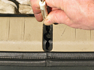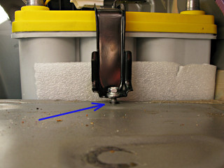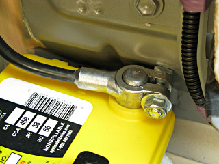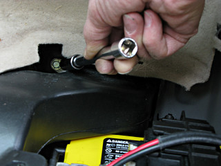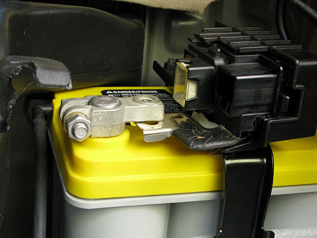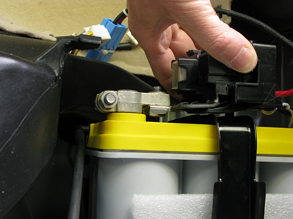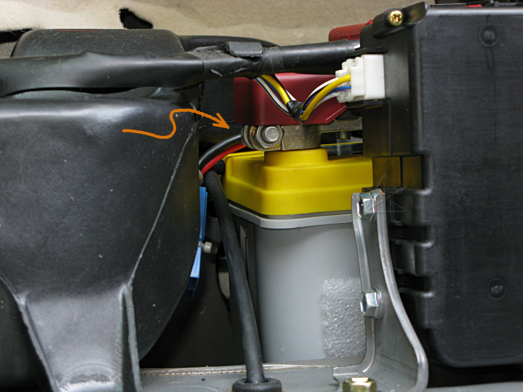 Now the cover seats down fully over the terminal, and the floorboard padding