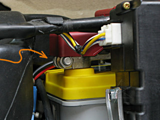 the fuse block and in between the plastic pegs. It's a little fiddly to get