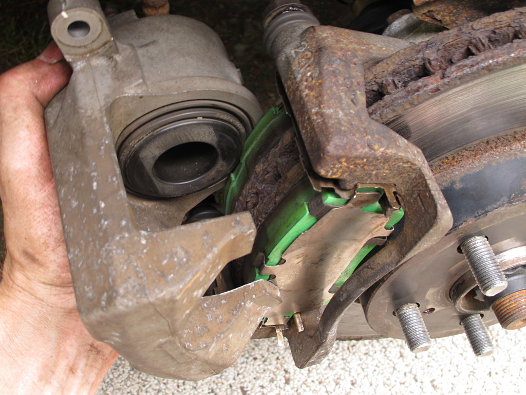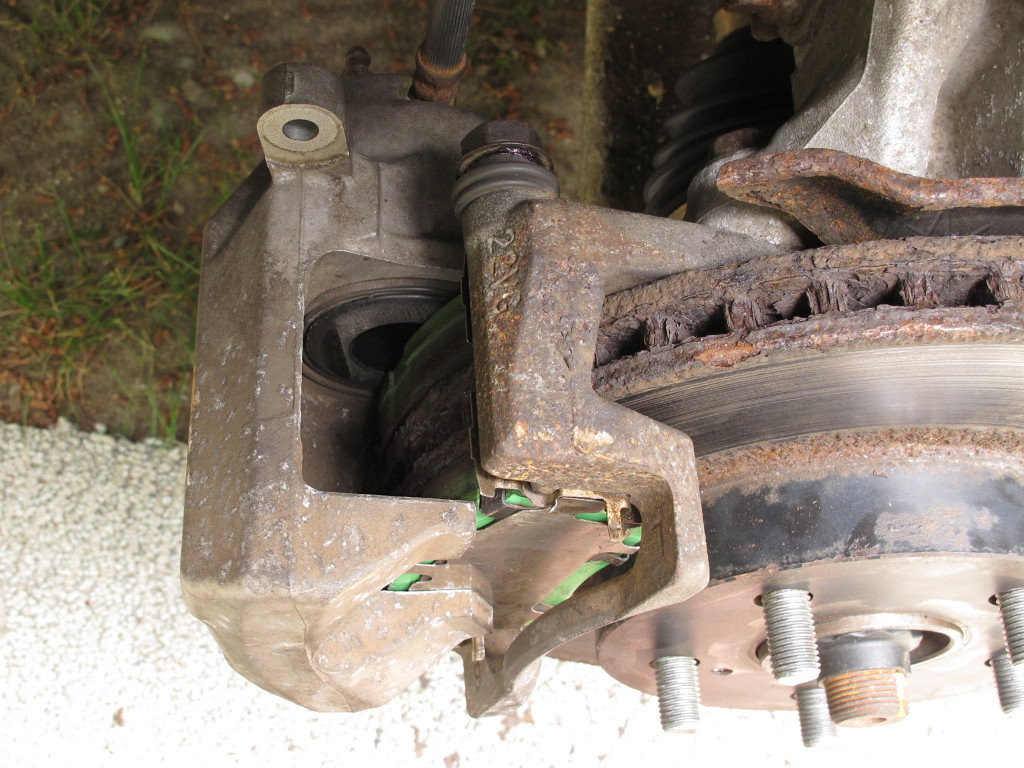 The rest of the job was just like the usual yearly cleanout, making sure the slide pins were correctly lubed and running freely, etc. While the edges and vent channels in the rotors looked pretty nasty by this point, there was nothing wrong with them and the areas that really matter were just fine. By keeping all the various mating surfaces clean and lightly greased on occasion I've never had the trouble with removal and reinstallation of wheels, rotors, or anything else that many others seem to report as problematic. |