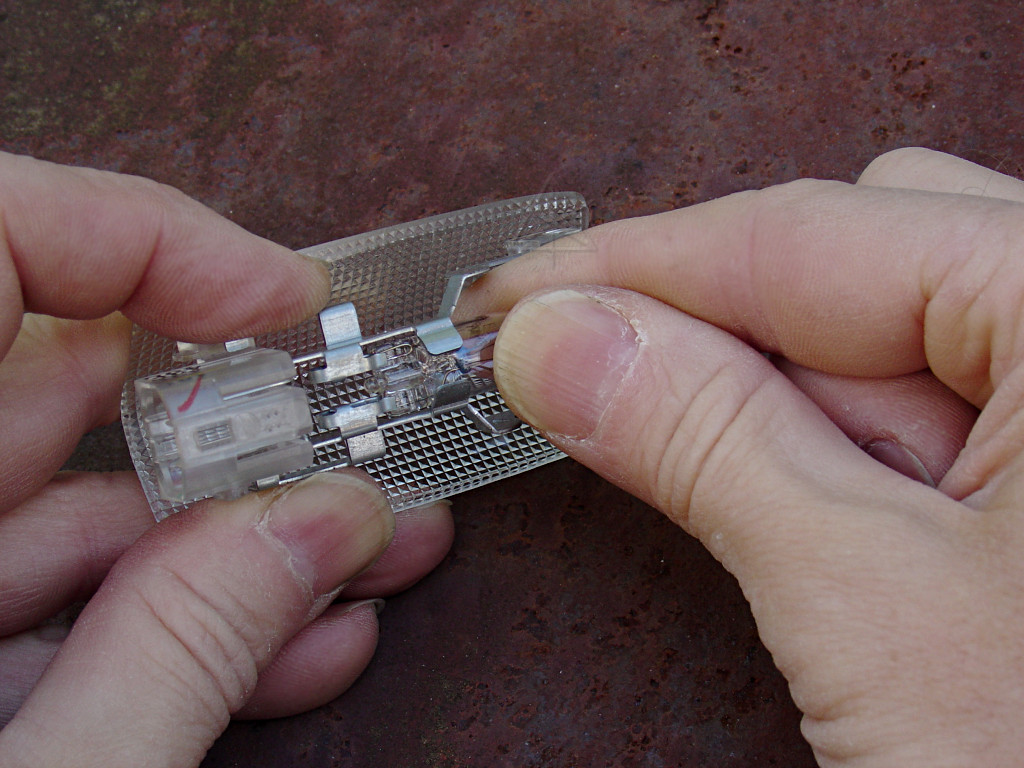 Pry gently under the right-hand end of the clear light cover. Always go for