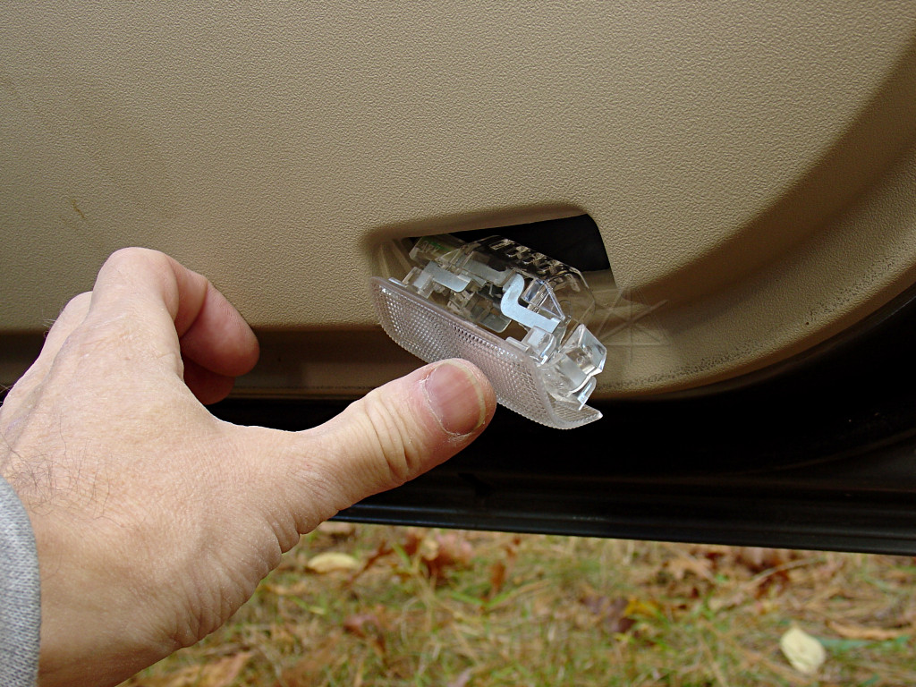 Removal of the courtesy lights may trigger immediate safety concerns about the visibility of an open car door at night. Quite valid, of course, and here's my answer for that: