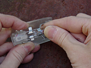 end out from between the lamp leads and separate the halves.