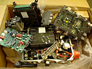 Additional parts unearthed from around the inverter. Either they went in the box that way, or a lot of twisting and breakage happened in the tender hands of UPS. Some small parts have been completely knocked off the circuit boards, despite the plastic bags and stacked-corrugated blocks that were supposed to keep things separated.