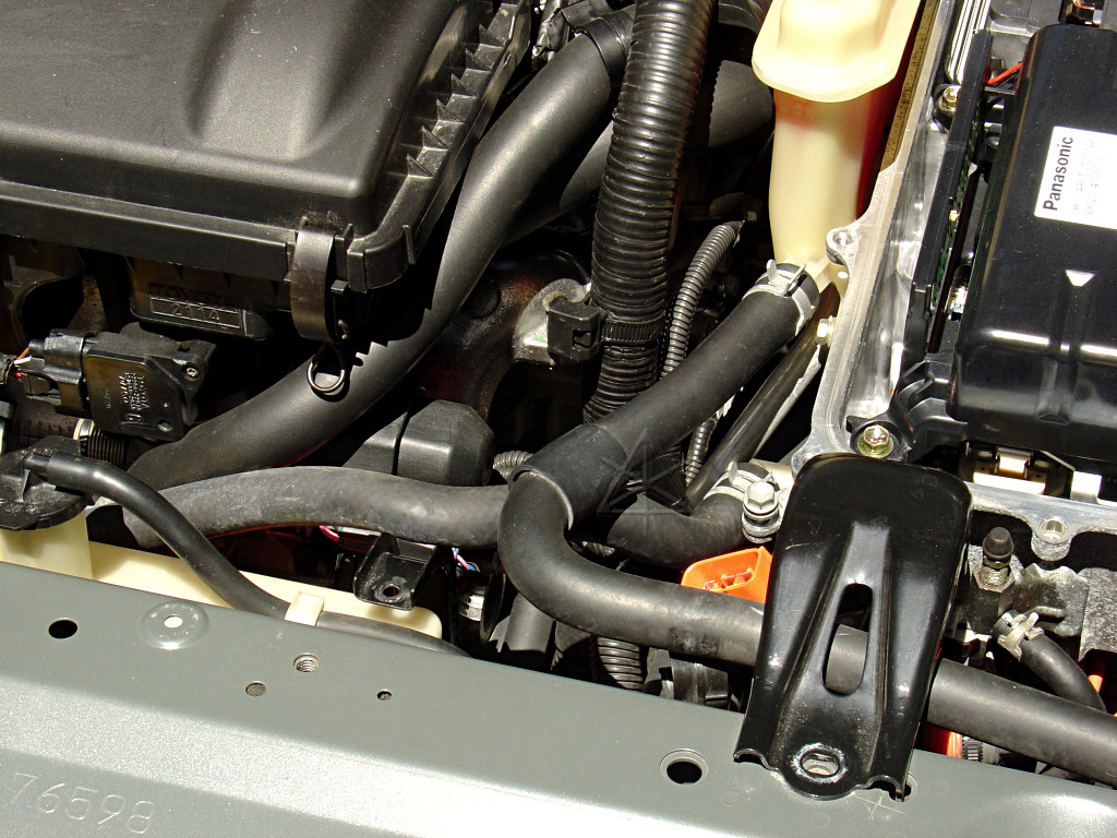 As you go to restore the inverter to its place, be sure to re-clip all the displaced hoses underneath. Since the transaxle moves relative to the inverter and surrounding parts, we don't want anything floppin' around down there. For the most part, Toyota's done a really stellar job on cable and hose retention/protection and accounting for drivetrain movement.