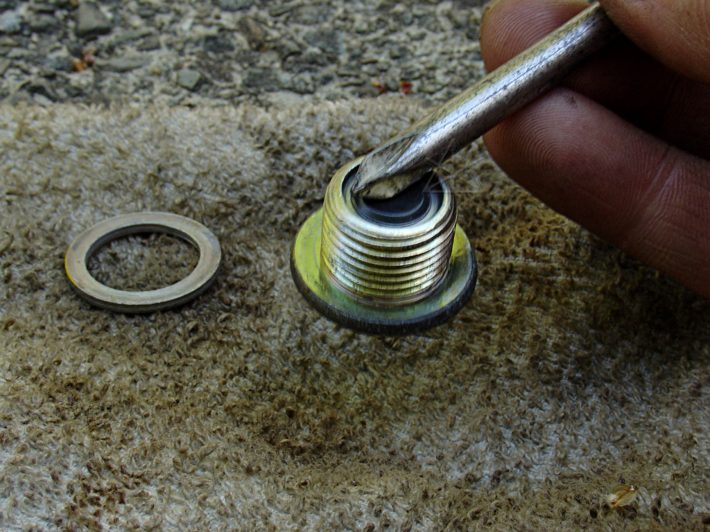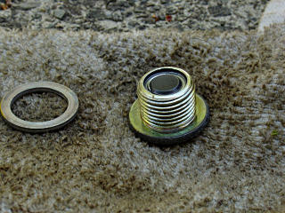 The magnet really isn't that strong -- the plug can barely lift itself, and only when the screwdriver is bridged across the magnet and the outer rim, i.e. two poles. It's amazing that MG2's very strong rotor magnets don't pick up more ferrous crud than they do... Okay, enough playing. Reinstall the plug into the transaxle and tighten.