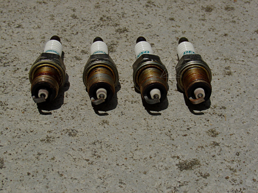 They still look pretty good. A little bit of carbon on the #1 insulator, nothing major. Variation probably has more to do with how they sit in the flow. So I mixed them up to reinstall. The reason this is relevant is that some engines actually take electrode orientation into account, and require indexed plugs -- you use the one that points the side electrode in a particular direction relative to the valves when properly torqued in, and the head is marked with which plug goes in what hole. Fortunately the Prius doesn't deal with any of this, but there could still certainly be some directional effects going on.