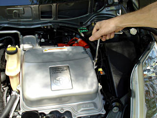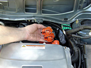 Ensure the car is powered down, the smartkey disabled, and inexperienced personnel kept out of the work area. Make the electrical system safe, and wait the specified 5 minutes for inverter capacitor discharge before proceeding. If you don't know what you're looking at here, maybe this isn't for you after all, but reading the battery current page might help.