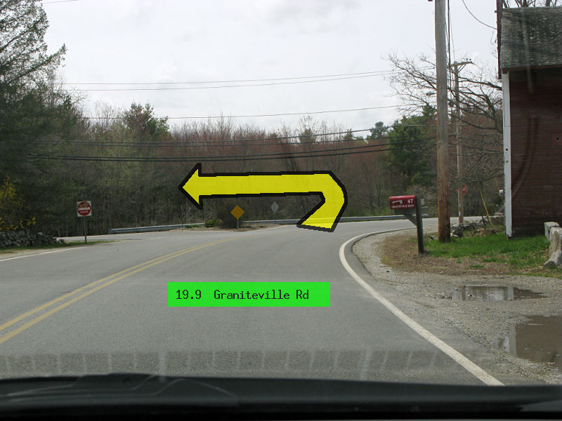 ![]() 19.9 : Graniteville Rd This is a TRICKY stop sign. Look for the "do not enter" sign on the left of the triangle; that's the first thing you'll see and you probably want to already be in your glide at that point. The stop sign hides behind the pole where you can't see it until the last second. Take a sharp left here, check for traffic behind you, and get ready for a hairy hillclimb. |
