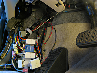 If you're implementing your own different type of mod and have convenient access to the coil side of the relay instead, go for it. Staying in the low-current area for control hacks is always recommended; physical layout simply suggests otherwise for this and after a year+ of having it this way I see no need to go back and redo the work. The switch doesn't get used all that often. |