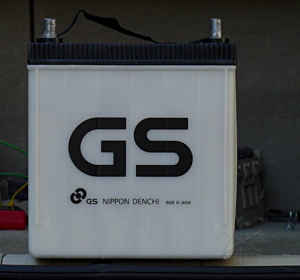 Well, whaddayaknow, another GS rather than Panasonic. Sealed and maintenance- free, according to the labels. Supposedly it's a spillproof AGM, and during March 2007 there was a long and heated discussion on Prius_Technical_Stuff about AGMs versus flooded lead-acid, charging caveats, whether or not to add water and/or what kind of water, etc. Well, get a load of THIS: