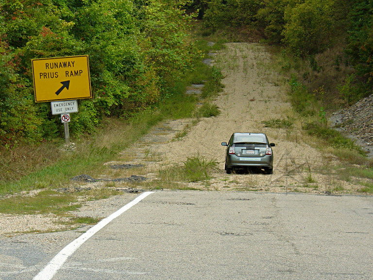 with a few more timeline details on the first two amusingly reviewed at Jalopnik. One might be tempted to cite a fourth problem as the cruise-control complaint that Steve Wozniak brought in from left field, but that has proven to simply be irrelevant self-aggrandizing fluff. I'll deal with him later. Now, far be it from me to imply that any automaker is perfect. None of them are -- with shareholder profit as the first priority, they all screw up and then gloss over the fact by burning more PR dollars. But Toyota has built up a pretty clear and well-deserved history of quality products, which depends not only on their own engineering ability but also heavily on their choice of parts suppliers as well as seeming to genuinely want to continuously improve the product. That's getting harder to maintain across any industry sector, with positively maniacal focus on the bottom line driving widespread outsourcing to the cheapest bidder. Toyota is a certainly not immune to that, as we'll see in a moment. Cars are very complex pieces of machinery these days; there must be thousands of places where an unexpected defect in a part or a design engineering principle could crop up. Product testing can't simulate *every* possible real-life condition seen over the long haul of a car's lifecycle through all kinds of weather. Especially when a whole set of new concepts is introduced, such as a hybrid powertrain. Even something novel like that can fall victim to mundane problems outside its immediate design scope. The early 2004 second-generation Priuses went through a recall for flakey brake-light switches. That could have had huge safety implications, as slowing down without any warning could easily trigger rear-end crashes, but there was no huge press dust-up about it. Toyota acknowledged the problem in a certain supplied brand of switches and went about getting them replaced in customers' cars as methodically as possible. Then there was the "stalling" problem caused by a fairly simple event timeout in a controller set a little too short; also an easy fix in software. We heard a little about the replacement stronger steering shaft, but that all blew over within a couple of months. Inverter castings leaked coolant, pump motors shrieked in cold weather, and dash rattles became a popular forum topic. Perhaps Toyota saved some face in the industry by dealing with most of this in a timely fashion, but perhaps the rest of the industry wasn't yet hanging on their every move as the Prius had not really come into its own yet. Meanwhile, through the last decade the Prius otherwise proved itself to be one of the most reliable, economical, and downright *useful* cars on the road, in spite of a few odd quirks that owners quickly got used to. Toyota's established skill in specifying high-quality, durable parts the majority of the time remained unquestioned, and consumers voted with their wallets. That undoubtedly didn't make the American automakers, already circling the drain and suffocating under burdensome mismanagement, a down economy, and their own litany of QC issues any happier. And thus the seed was planted for what could become a massive witch-hunt mostly for the sake of public spectacle. If anything it has been some of the most irresponsible, sensationalistic reporting we've seen from what's left of our press since 9/11. Just take a look at the vindictive glee all over the articles over at Detroit Free Press, for example. If as much time and effort and high-profile publicity went into training our own nation's drivers properly, only then would we truly be able to "move forward".