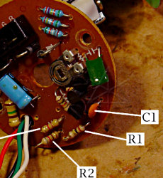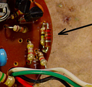 The deed is done; new resistor piggybacked right onto the original.