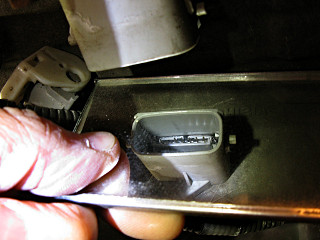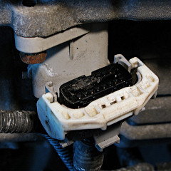 The connector seems designed with the intent of keeping splash out of it, since it's right there exposed to everything thrown up from the road, so I'm not sure how water got in [if that's even the cause]. Perhaps the little gasket around the wire where it comes into the outer connector leaked, letting the infamous New England winter salt-solution seep down into there.