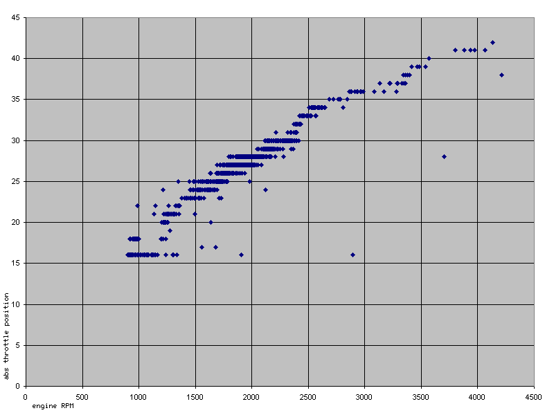 We can easily see the granularity with which throttle position is reported,