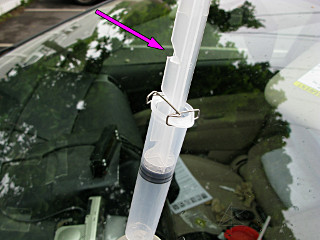 Somewhere in Falmouth I found an auto-parts place and got one of the fix-it kits from Permatex, and retired to a convenient and mostly tree-shaded slot in a parking lot at a Chinese restaurant to attack the problem.  |