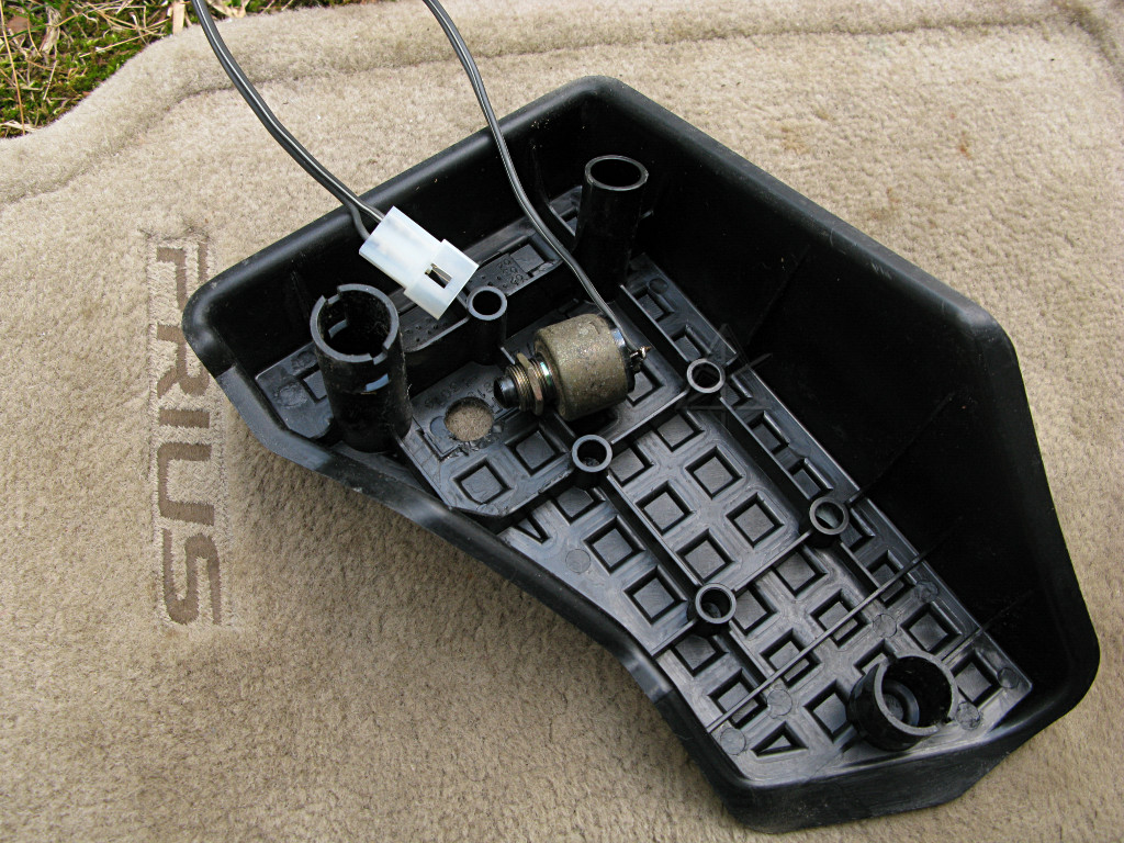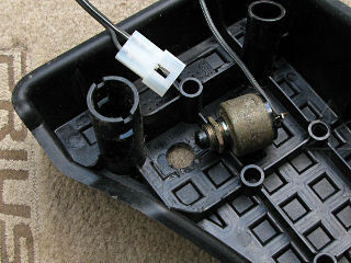 A few more lessons were learned over time, too. The very early days of the YB were infrequent warnings that something might be amiss or not as expected. But as conditions and attitudes progressively degraded, in its second incarnation it became more of a defensive mechanism -- a "get off my ass" light, used on the highways more and more frequently in conjunction with a leftward-pointing thumb out the driver's window indicating "go around already". Thumb, not a finger, to eliminate any misinterpretation of which finger it might have been. In many cases that clarified what I wanted, although the response even with that added would depend heavily on the following driver's attitude. I'd say that most of the time I would see a satisfactory retreat and/or a left blinker go on, and naturally a certain proportion needed another reminder after starting to drift up again. But this frequently-necessary "full Monty" treatment required two-hand involvement -- getting the driver's window open, the button, and the thumb. This began to get cumbersome in congested situations, and I began to think about a safer and more efficient way to communicate. Stamping out tailgating in our lifetime? The inspiration for the minor ergonomic change needed came while nearing home from a small roadtrip along one of the usual meat-grinder stretches of local interstate, and the preliminaries were noted to CleanMPG: ... being able to send a jarring, unusual visual signal from the rear of the car has become absolutely essential safety equipment. It has very likely saved me from being rear-ended on more than one occasion, and has time and again proven its worth in waking up the distracted and getting them away from me. But as a button on the side of the steering column, it requires moving a hand off the wheel to use. I've decided that in the interest of increased safety and convenience, it needs to become foot-operated. By my *left* foot, which basically does nothing when driving.By the time my post sank into oxide at the forum database, I was already rummaging through parts bins in search of a suitable switch. I remembered the headlight switches from the days of yore -- a big, robust metal click-button on the floor to toggle high and low beams, because in the days before relays handled everything that switch needed to reliably handle ten amps or more. And drivers managed that *and* a clutch with the left foot in their manual setups just fine. |