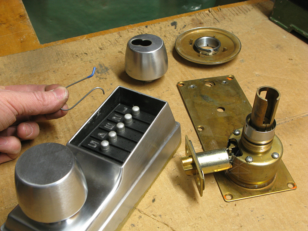 What's especially ironic about me having one of these locks on my door is that *way* back in the day I wrote one of the seminal text-files [backup copy here] on how to manipulate them open using differential pressure techniques. It even works if the lock has been programmed with the special "mil-spec" trick that requires holding a button halfway in during the open cycle. Simplex didn't tell everyone about setting combinations like that, but it's pretty obvious once you start studying the rather cleverly designed innards. Here's part of an article on them from Locksmith Ledger. |