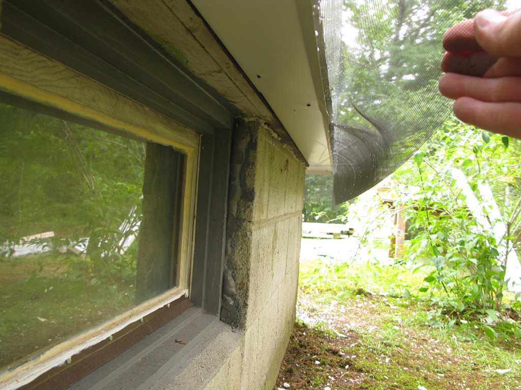 This left the remaining space open at the sides, but that was all under the sill flashing metal and now less likely to get water intrusion. We'd come up with something to fill these later. |