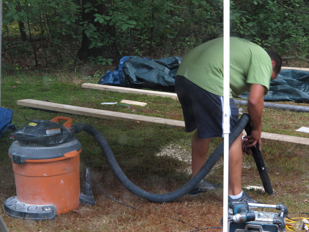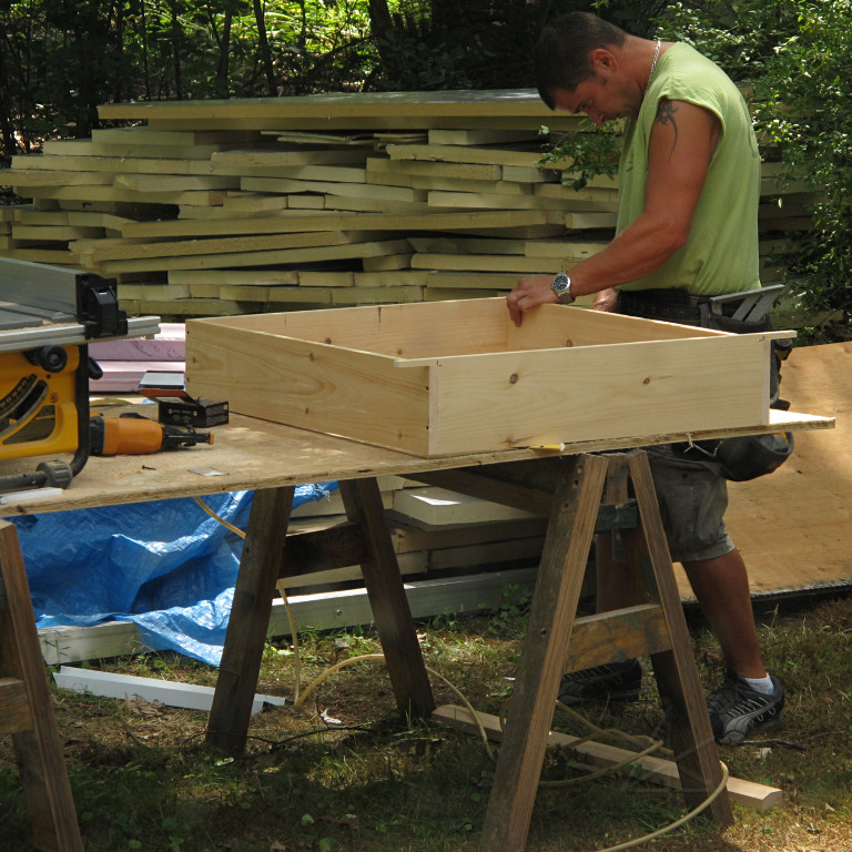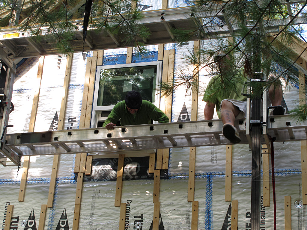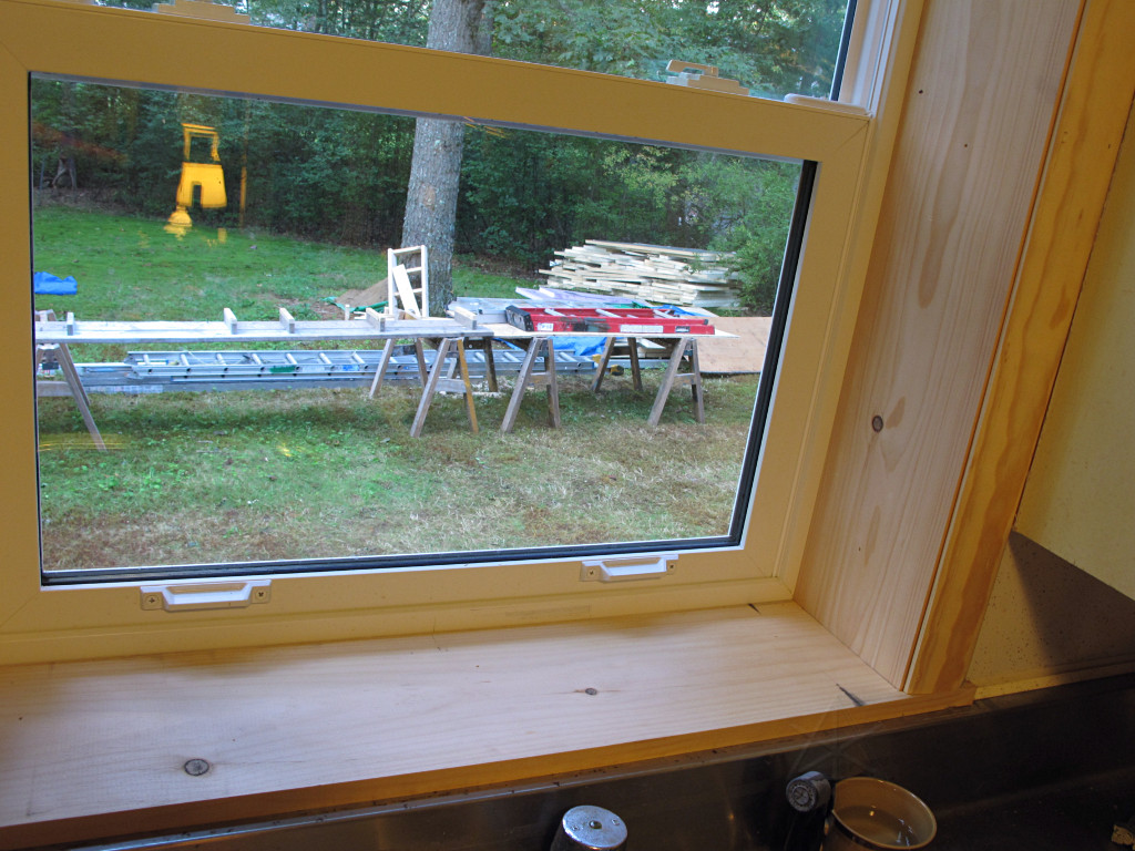They brought a smaller but higher-precision table saw, and after the window air-sealing was done it was time to start cutting jamb boards. |