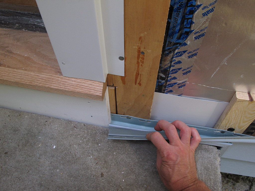 Then the siding courses could meet correctly over the door, incorporating said light-block along the way. |