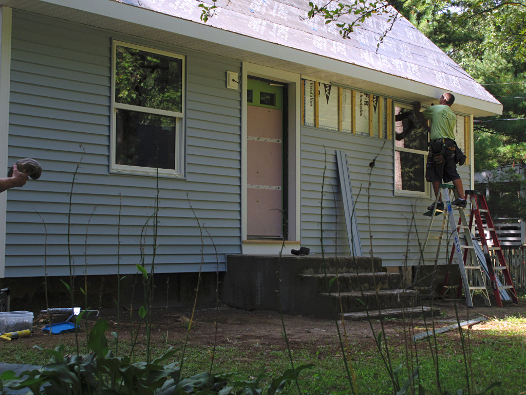 | Only two guys showed up the following Monday because all they had to do was get the door casings finished up, and I didn't even bother to get any pictures that day. The important thing was that the main part of the insulation retrofit was finally over, with roofing yet to come. The rest of the crew were already on a new job in South Boston somewhere, which is great because it meant that another home was about to start using far less energy. |