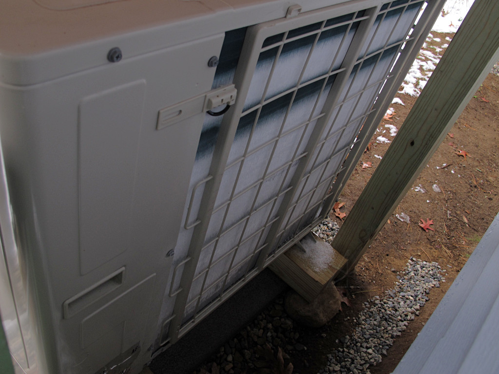 It was chilly and rather humid that day, and while the heat pump wasn't running that often it frosted the coil up pretty quickly when it did. Air-source systems obviously have to run colder than ambient which easily gets below exterior dew-point *and* below freezing, and if there's a lot of water in the air the whole coil can get plugged up in short order. Mid-range temps are actually the worst, as the air can hold a lot of moisture but the coil has to run sub-freezing to do its job. But the colder it gets outside the less water the air can hold in the first place, and later I observed that icing up took quite a bit longer when the air started at 20F instead of maybe 40F as it was here. So overall cold-weather heat pump performance is helped by the simple fact that it doesn't have to defrost quite as often. |
