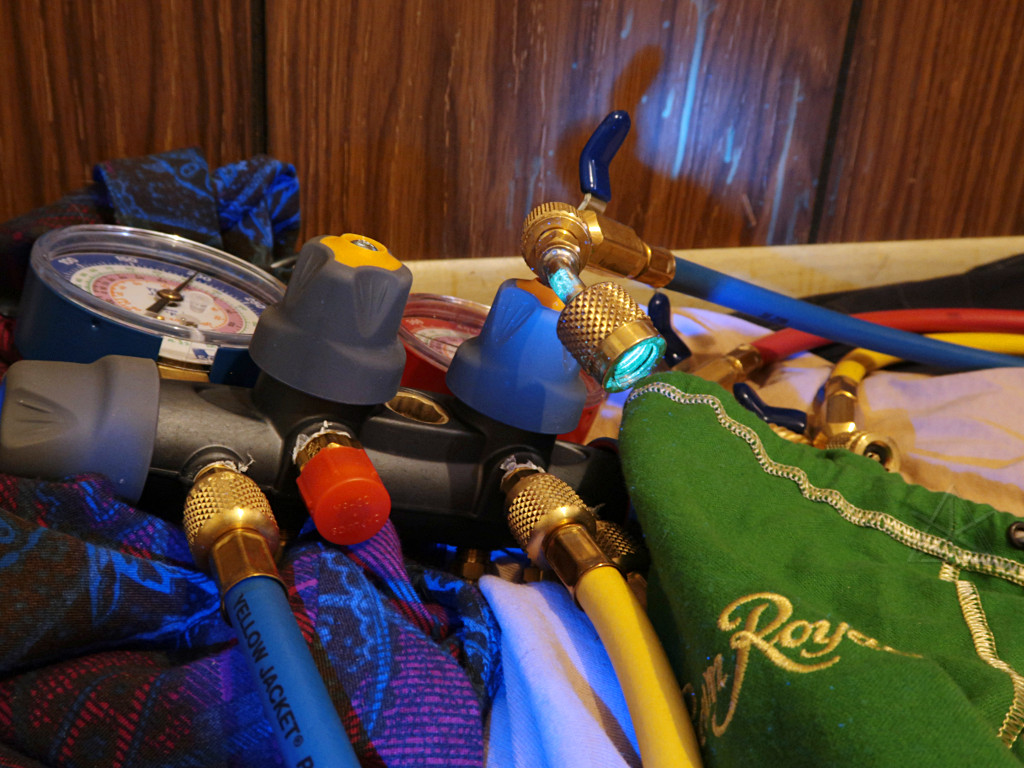 This idea took root and grew, and along with possibly getting myself EPA 608 certified, as it's known, I could already buy HVAC tools on Amazon without even having that status. After observing my various service visits and a few Youtubes I knew I could easily and safely handle this stuff, so why not? If a bit more money and passing a test involving some science were all that stood in the way, it was a project well worth tackling. I started making a list of what I'd need as permanently owned tools to work on the system, and easily found a lot of good EPA study guides all over the internet for free. While the neighborhood guy had recommended the two or three evening training course that he'd taken over at S.G.Torrice, it became clear that I could just learn this stuff on my own and only bring in an external agency to proctor the test when I was ready for it. And to hasten this process along, this latest top-up only lasted about a month before the system was wheezing again and giving me "the finger" of premature evaporation. Either the leak had gotten worse, or my neighborhood buddy had done something wrong when he unhooked and closed up the fittings again. I didn't feel right about pestering him to keep coming by with his pink bottles of salvation, and at this point, *fuck* if I was going to keep paying for $800 "professional" truck rolls. I was determined now: I'd go ahead and get myself able to pursue this whole mess on my own, and began working on several fronts to make that happen. |