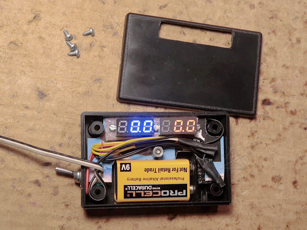 At some point in the midst of all this I decided to construct a little box to make the "voltmeter pressure-read hack" more convenient. Two little tiny digital meters, in red and blue, a 9 volt battery, and my original connection cable. This and my P/T voltage chart makes high and low pressure reads fairly easy, and those are always measured at the compressor, independent of the reversing valve. |