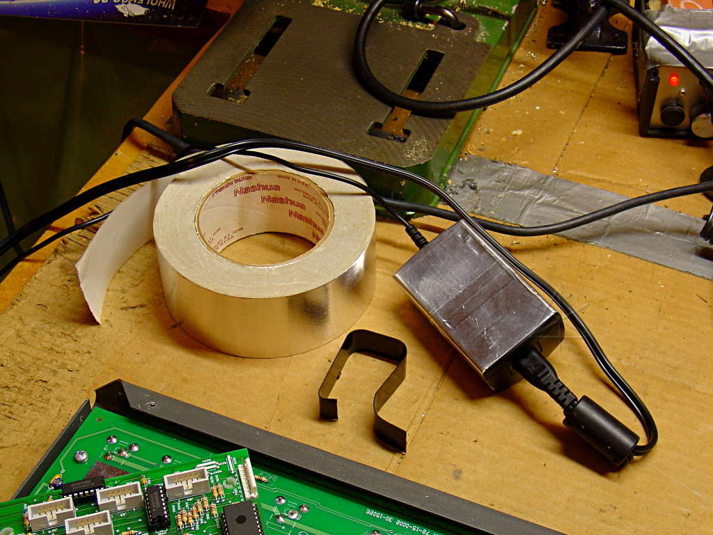 we add a little self-adhesive shielding. A clamp bracket is formed from steel