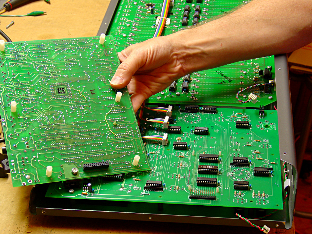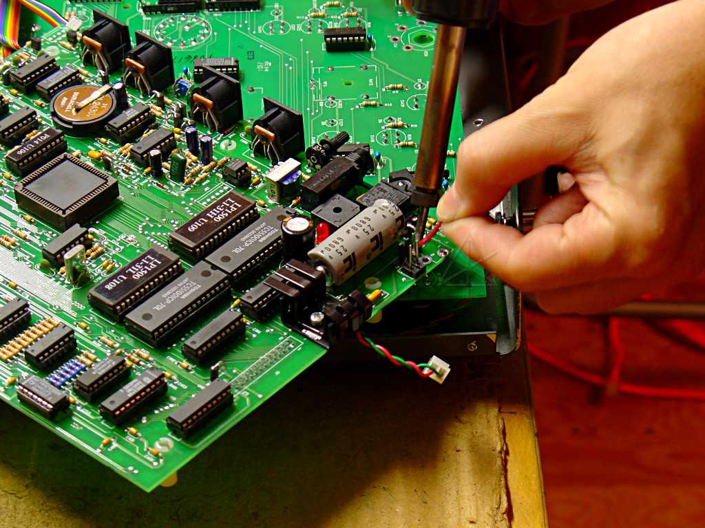 Almost all the chips are socketed, facilitating easier repairs. 7805