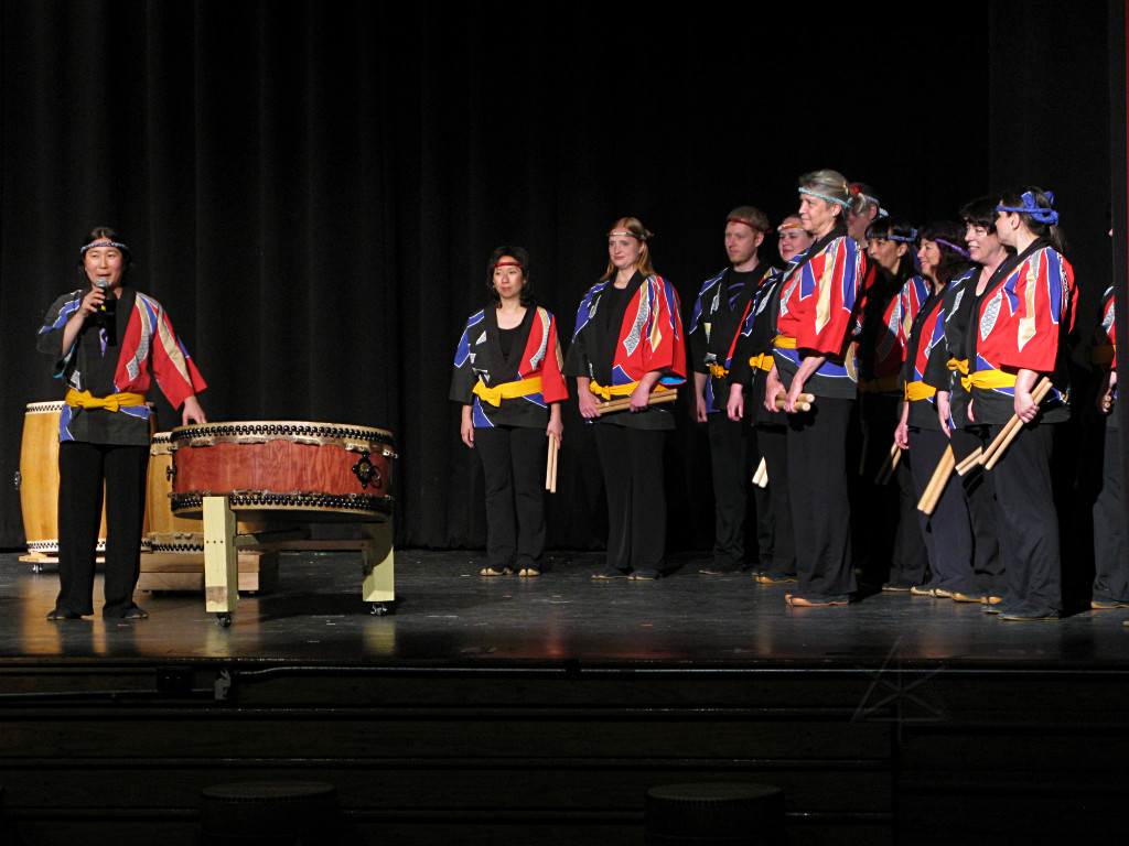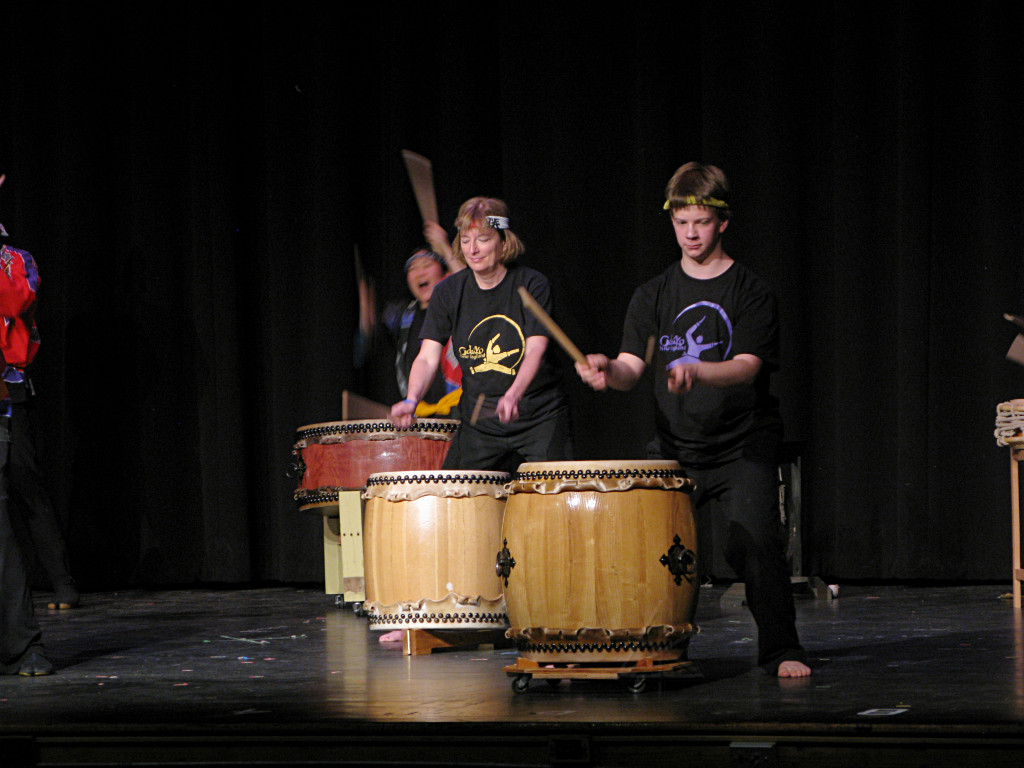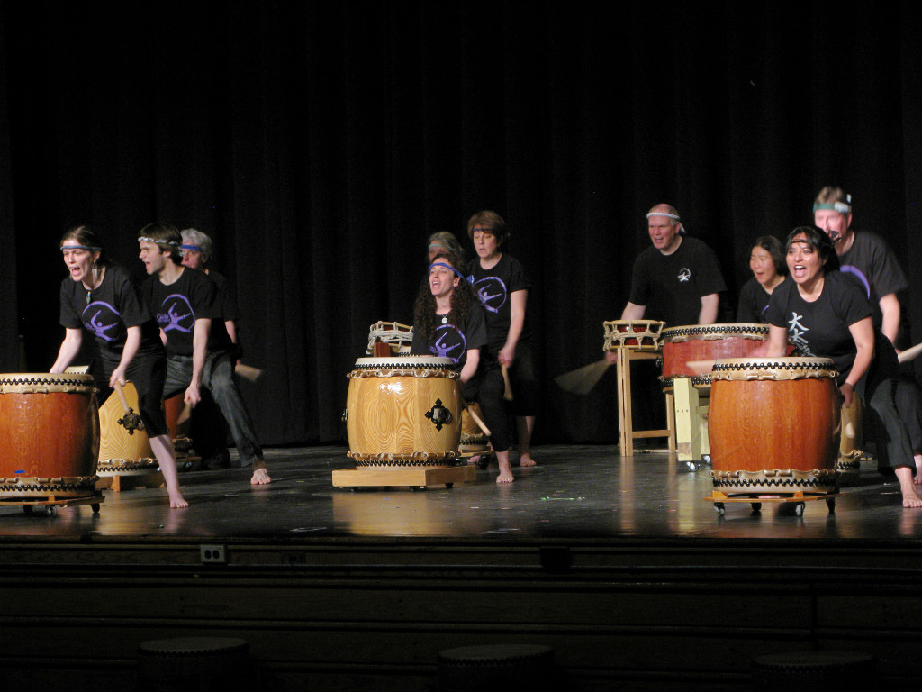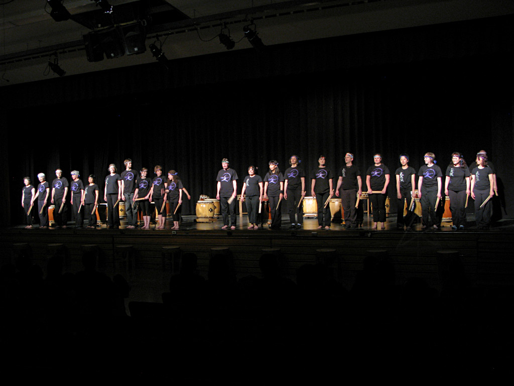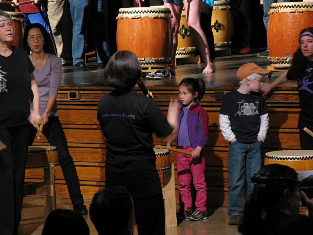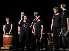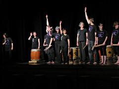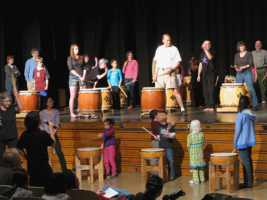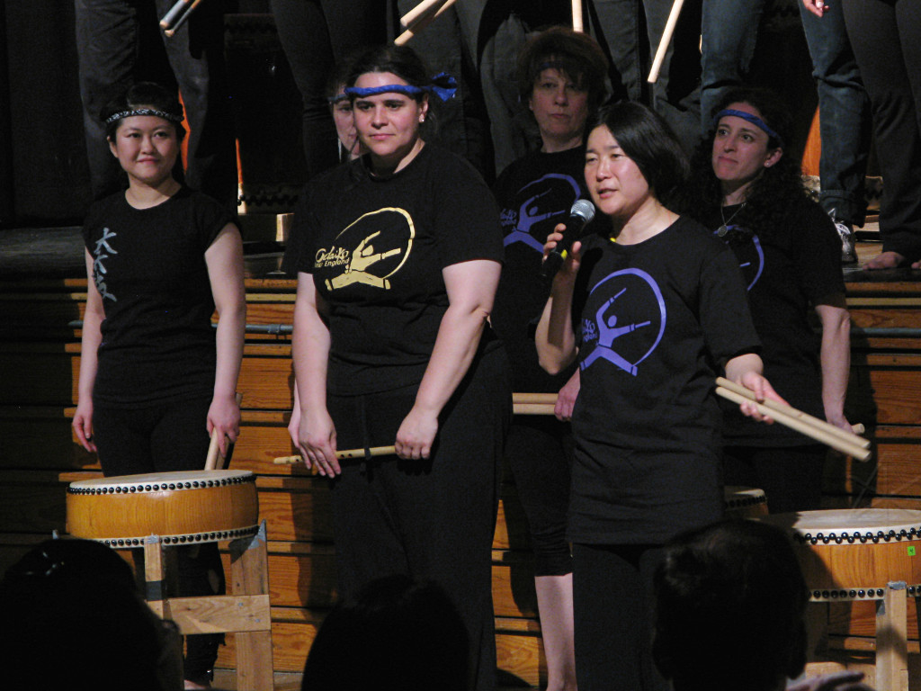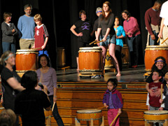 | Odaiko New England's newest big drum is presented, and everyone gives it a hit! | |