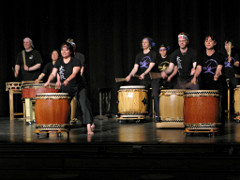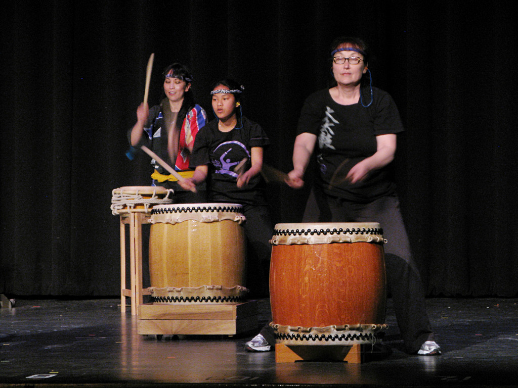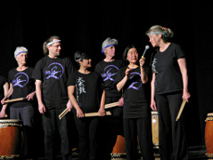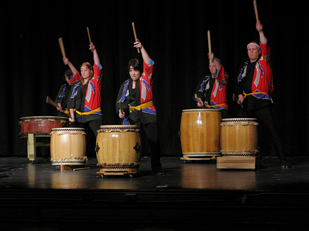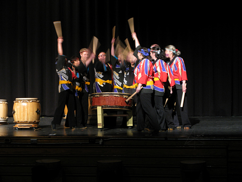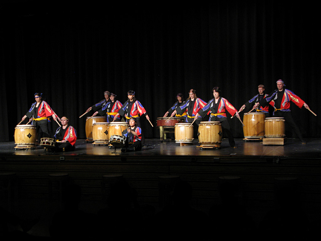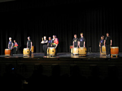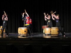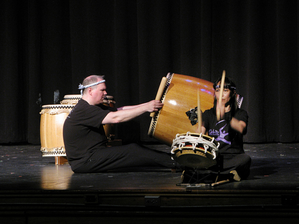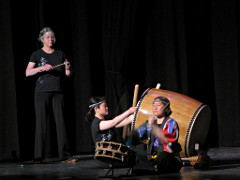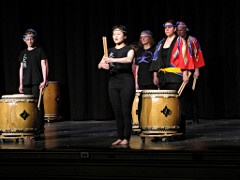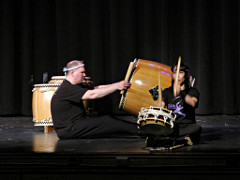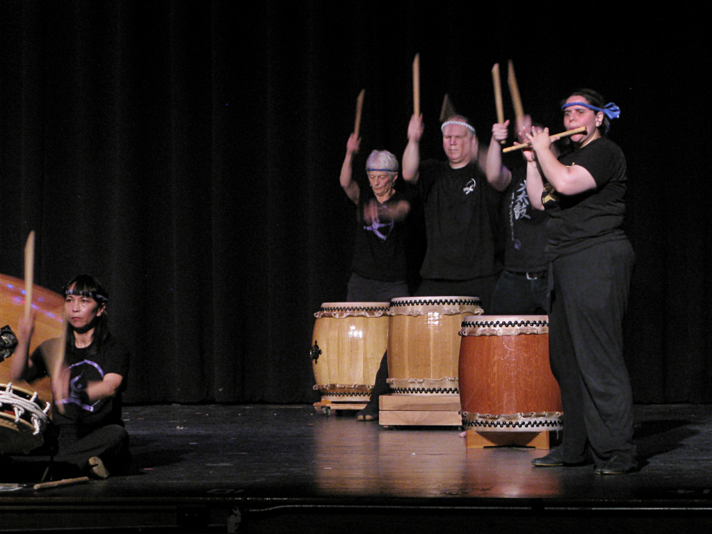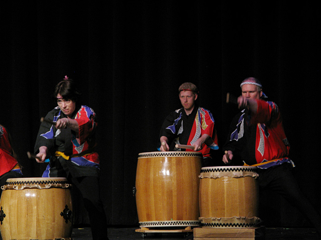 | Odaiko New England's newest big drum is presented, and everyone gives it a hit! | |