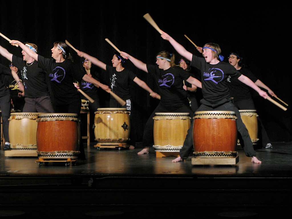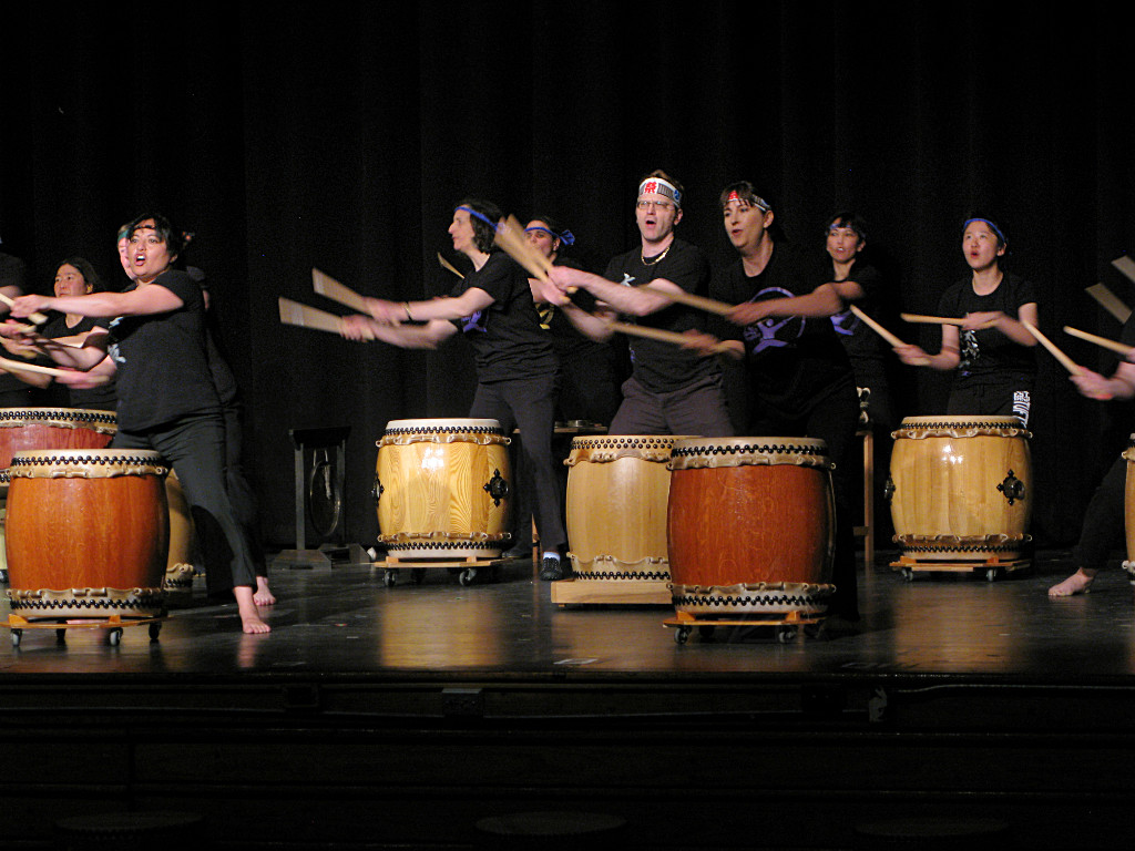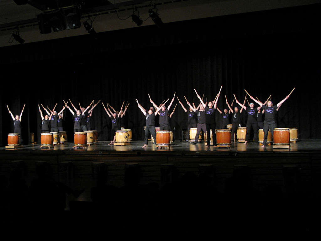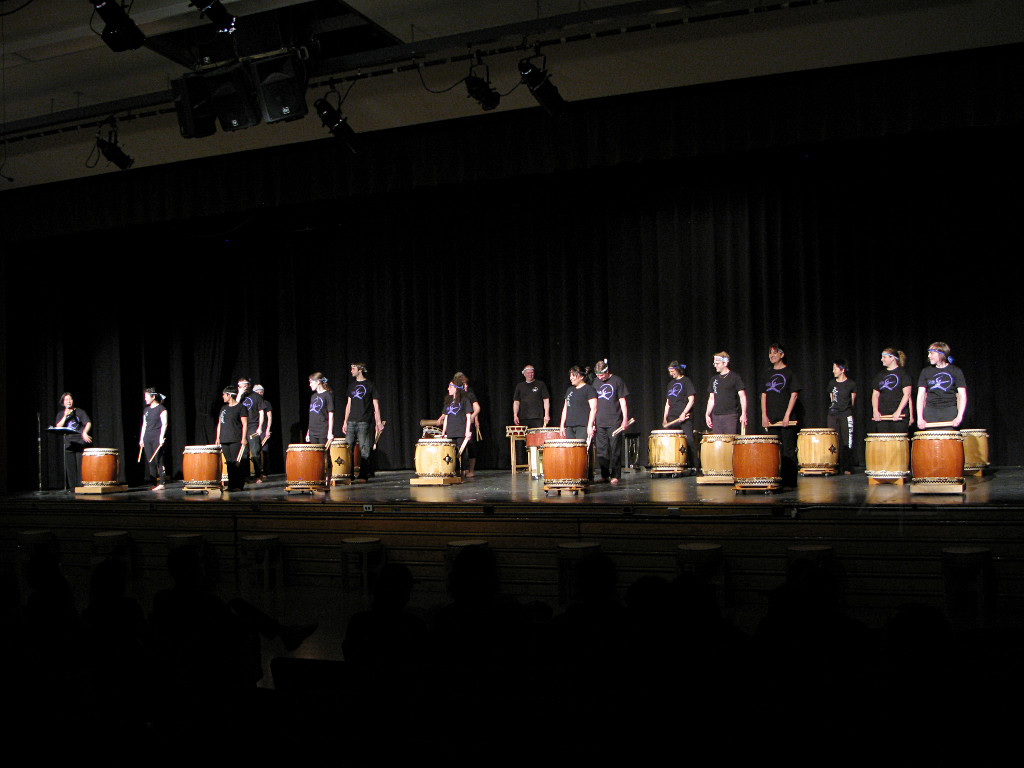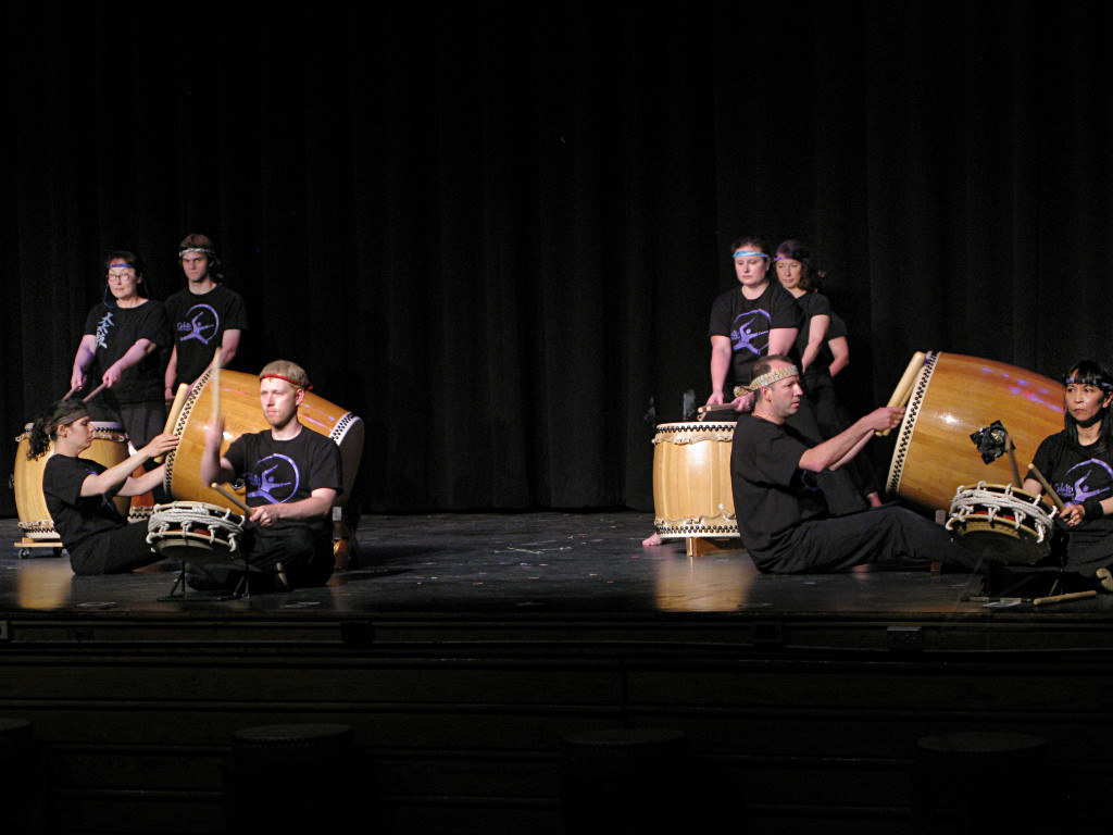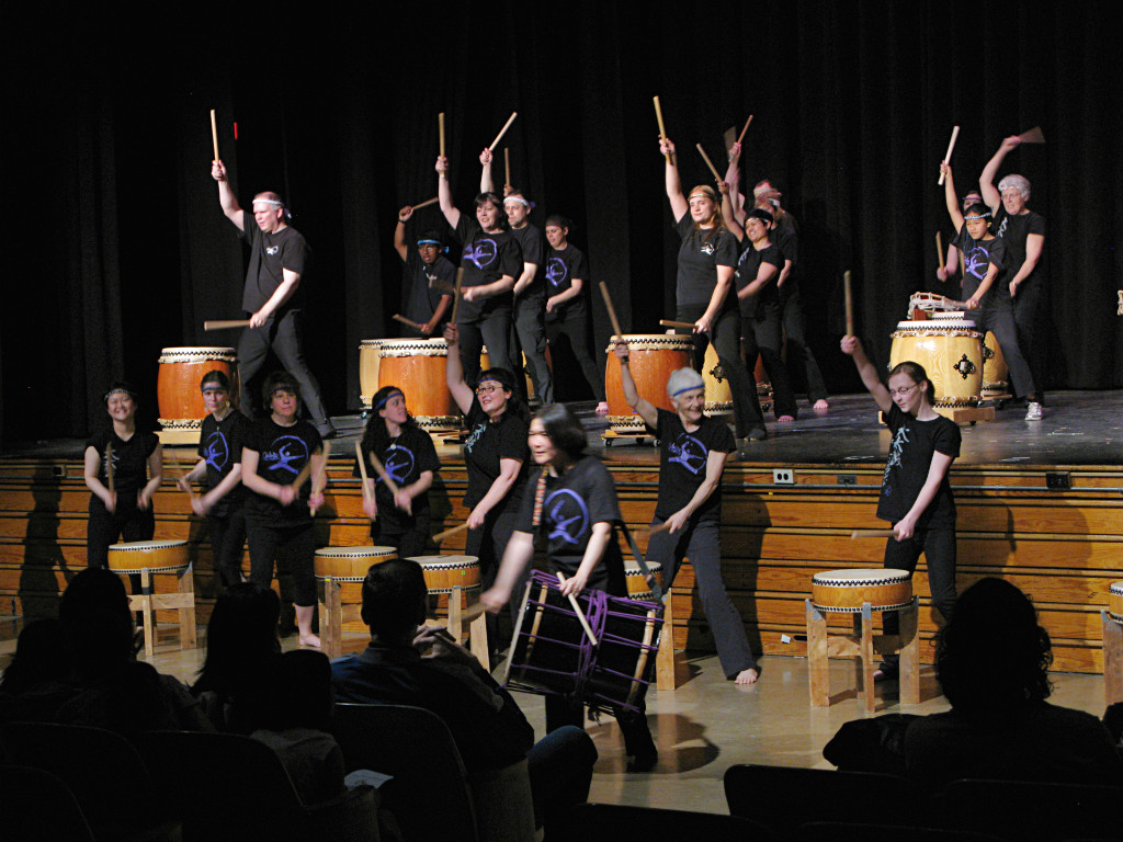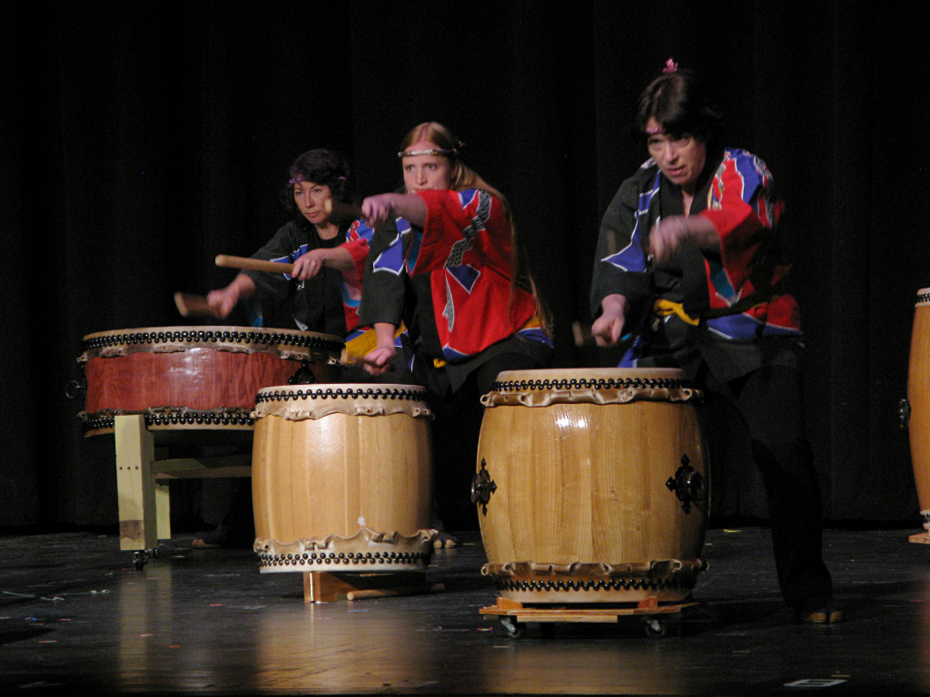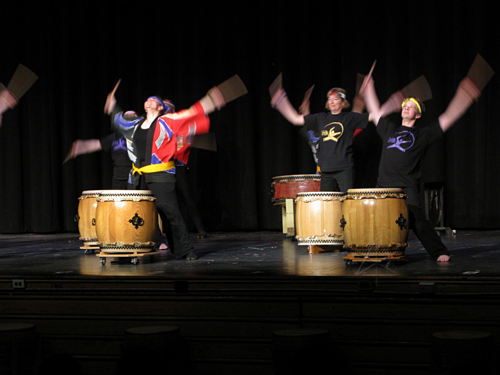 | Odaiko New England's newest big drum is presented, and everyone gives it a hit! | |