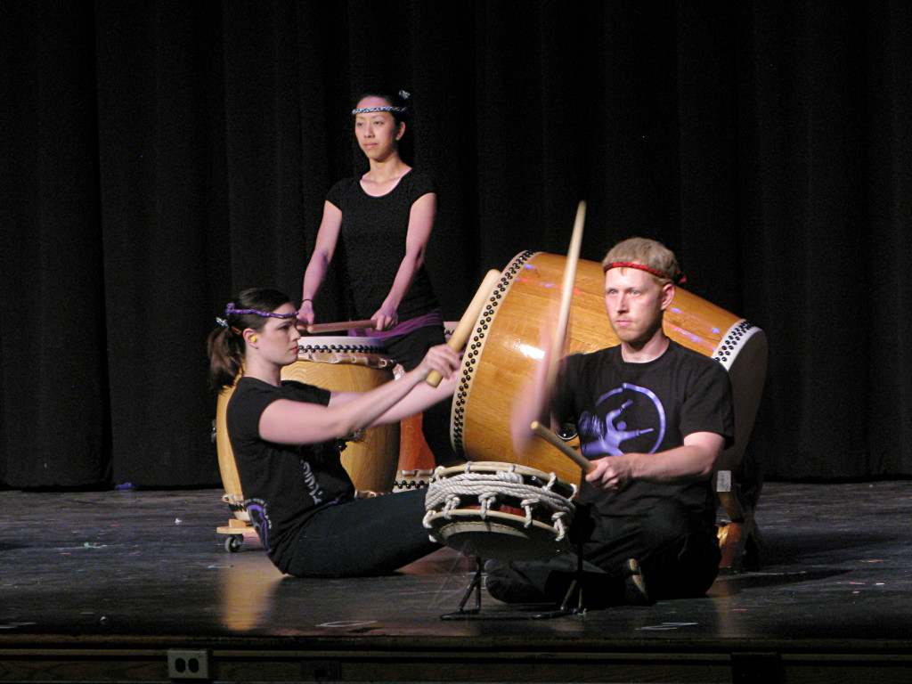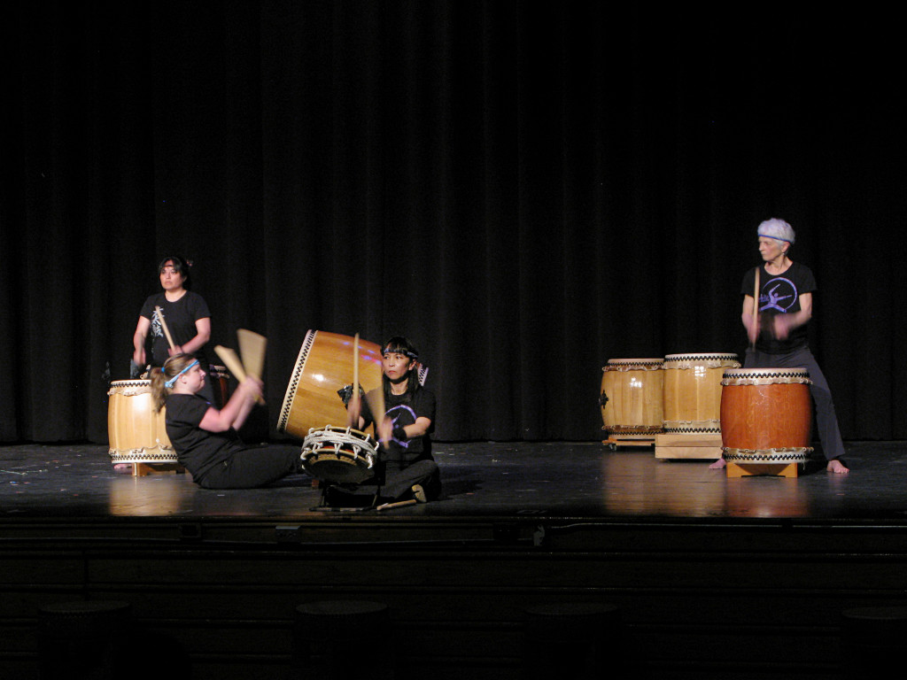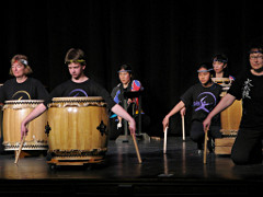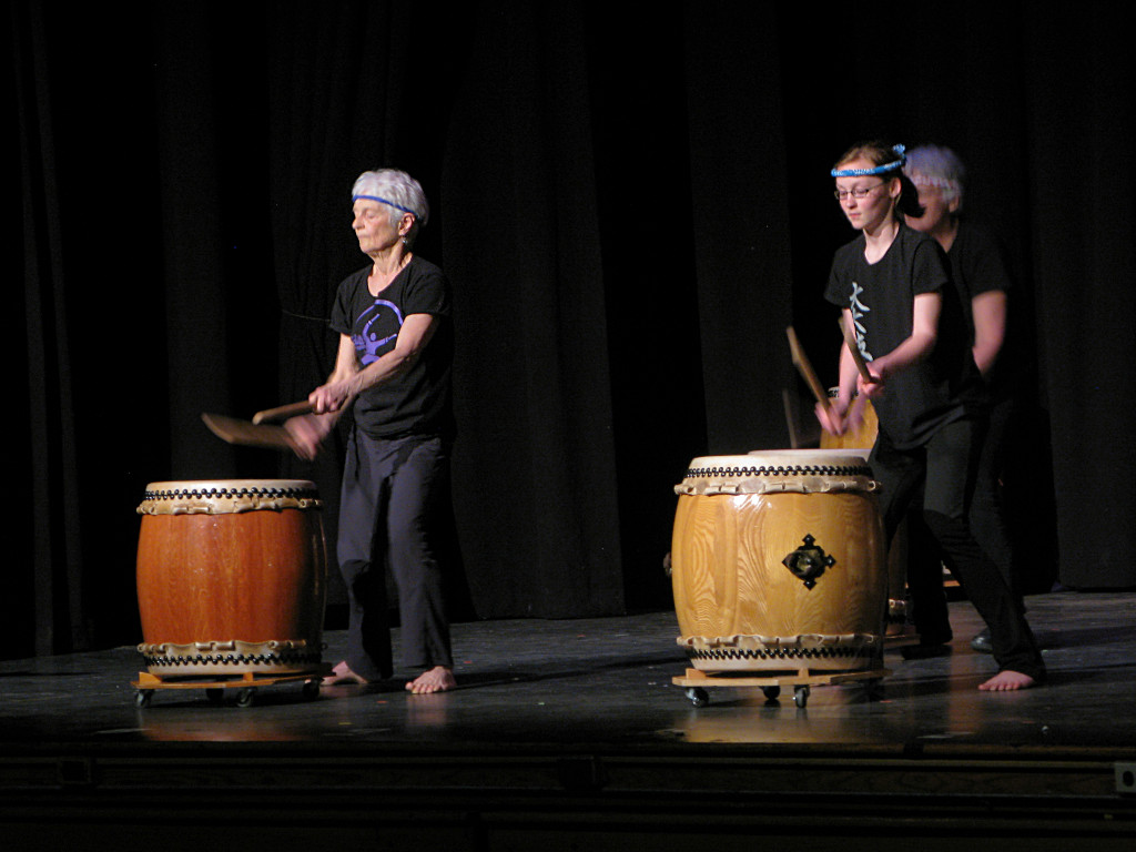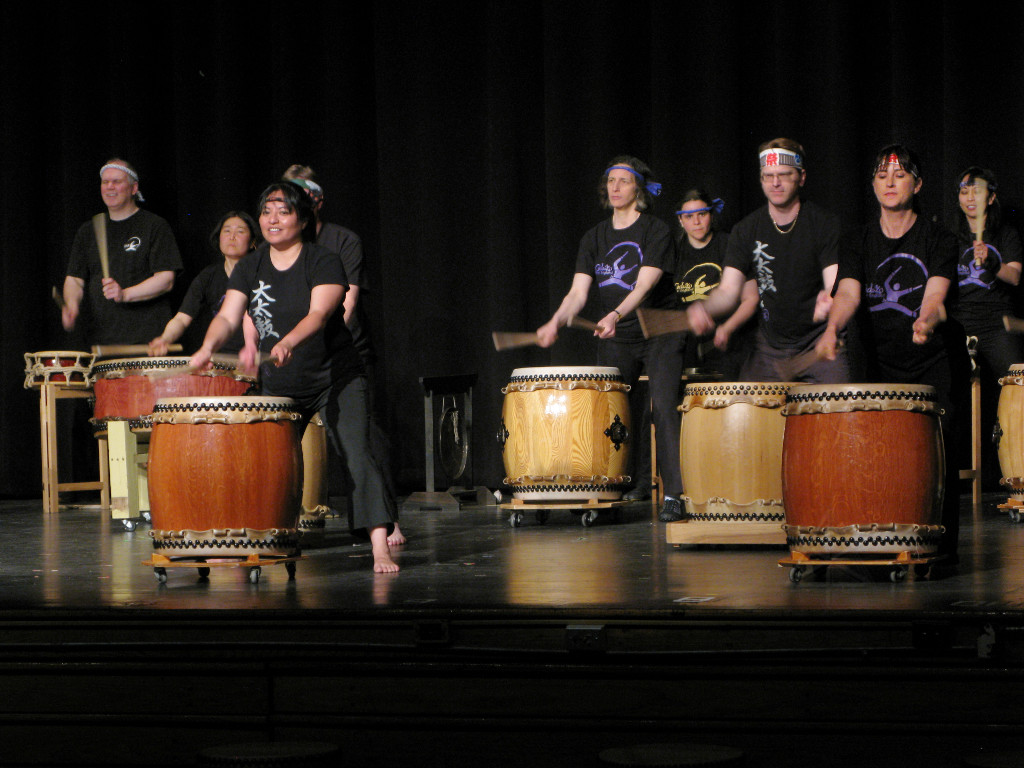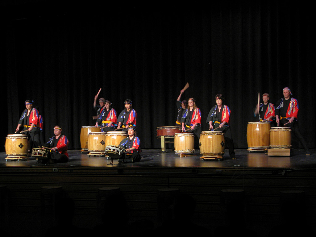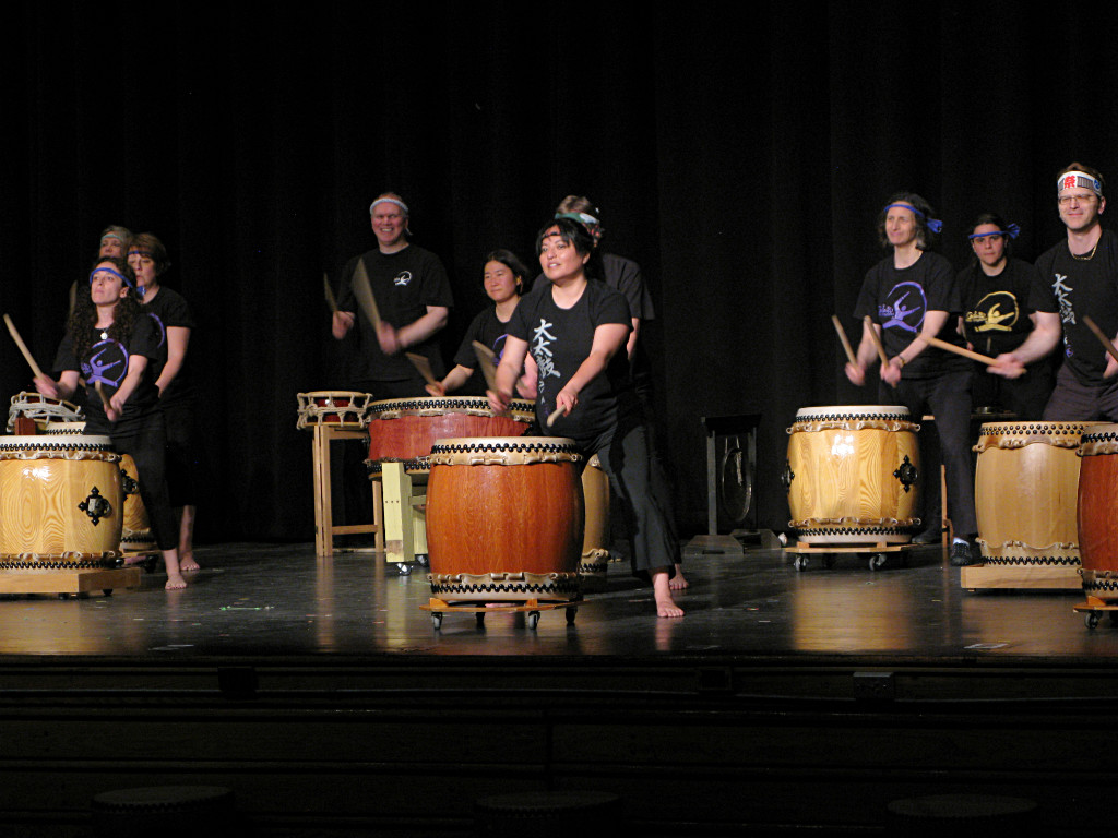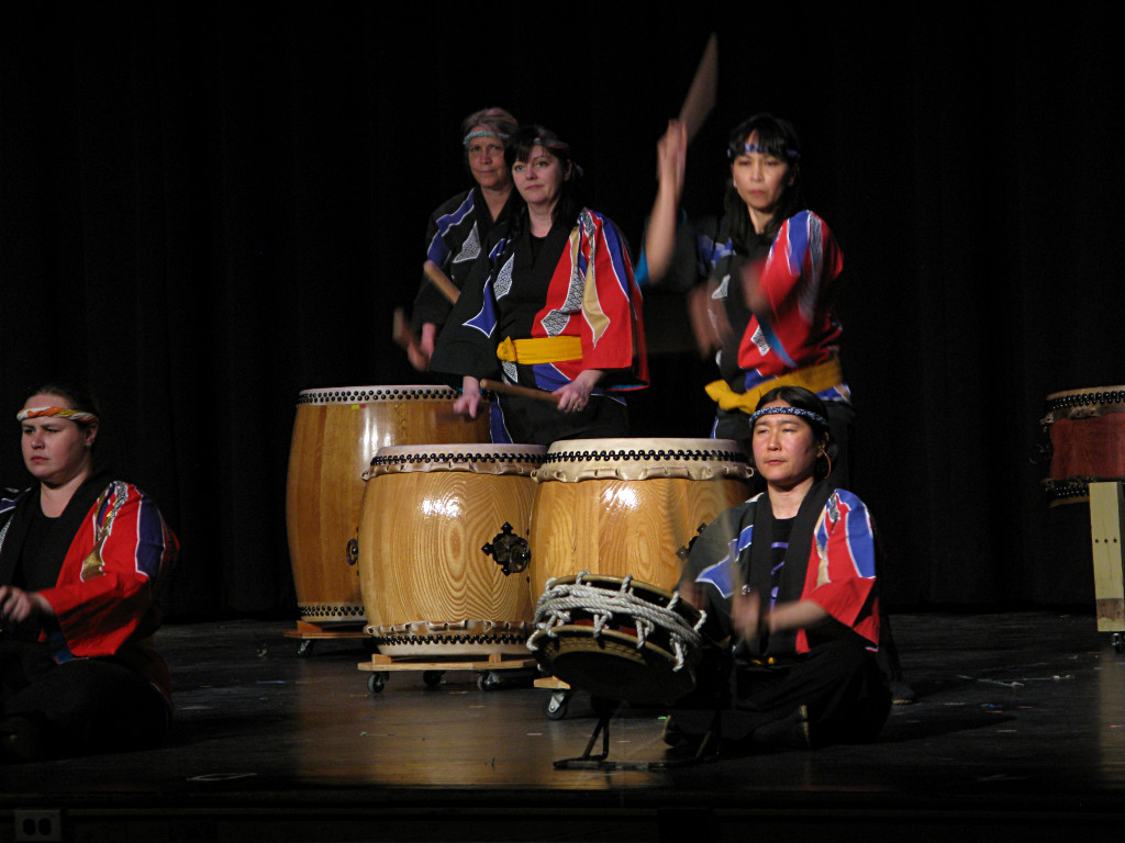 | Odaiko New England's newest big drum is presented, and everyone gives it a hit! | |