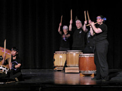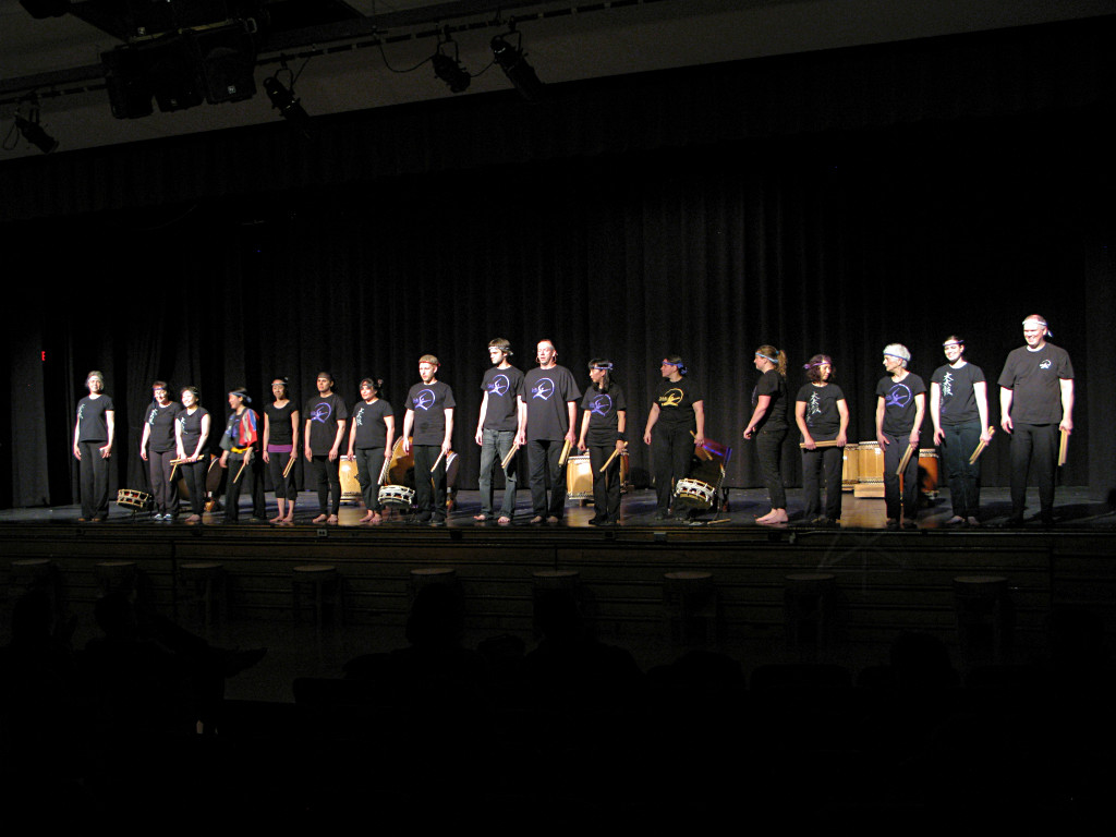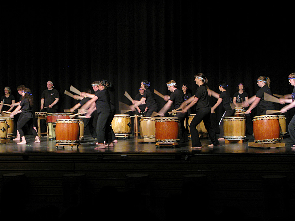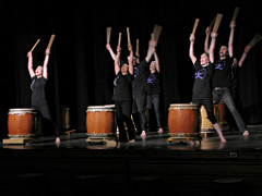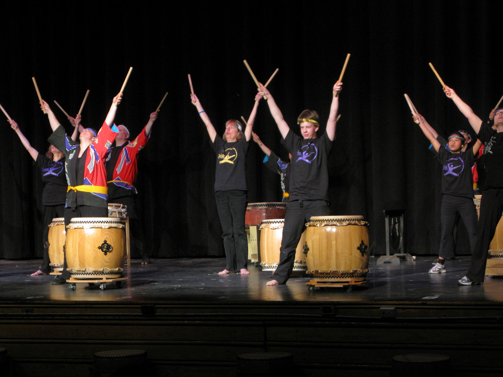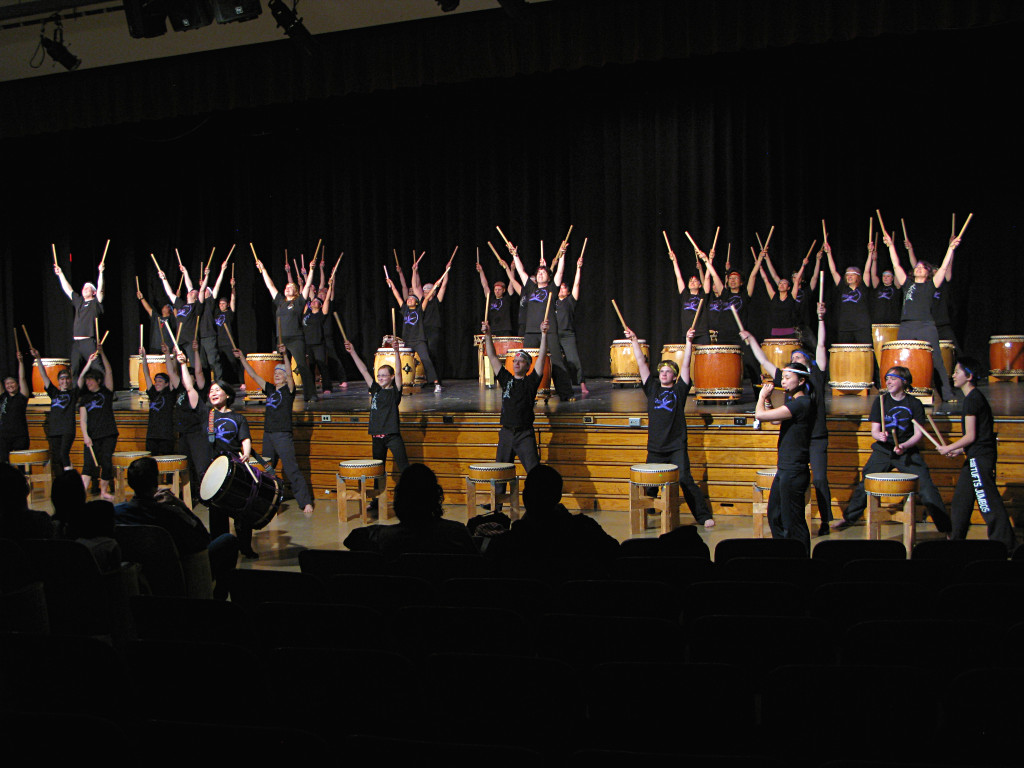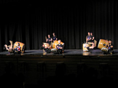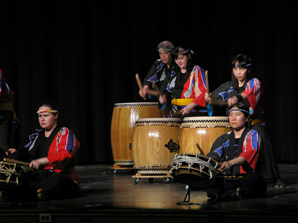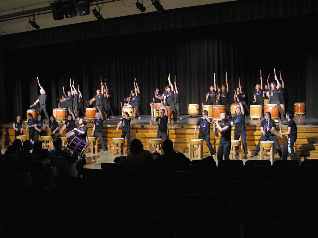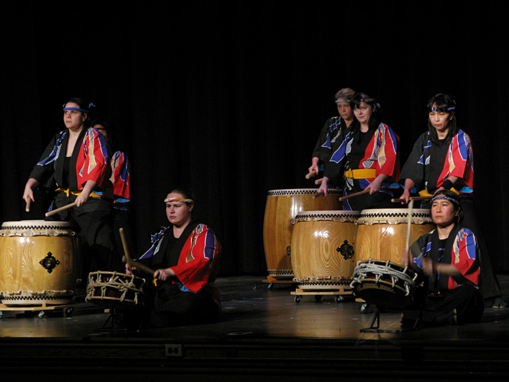 | Odaiko New England's newest big drum is presented, and everyone gives it a hit! | |