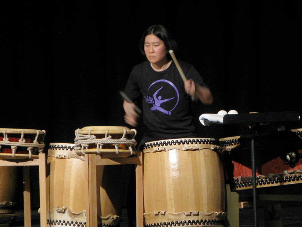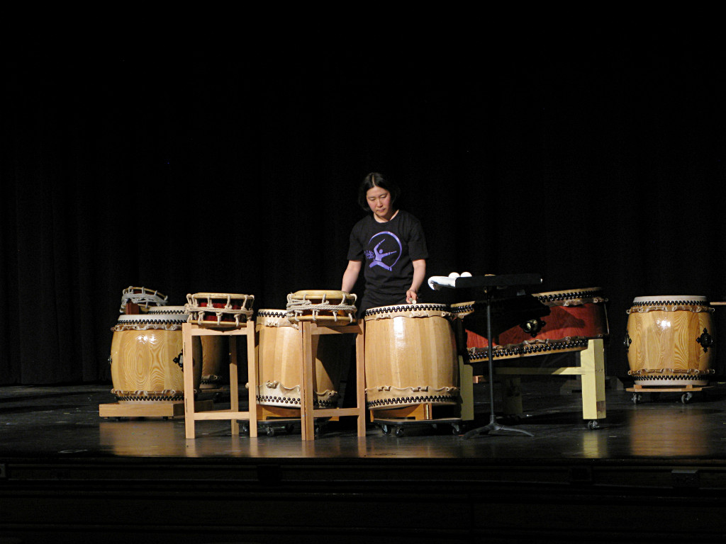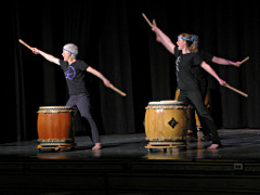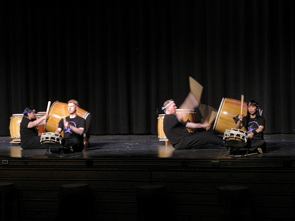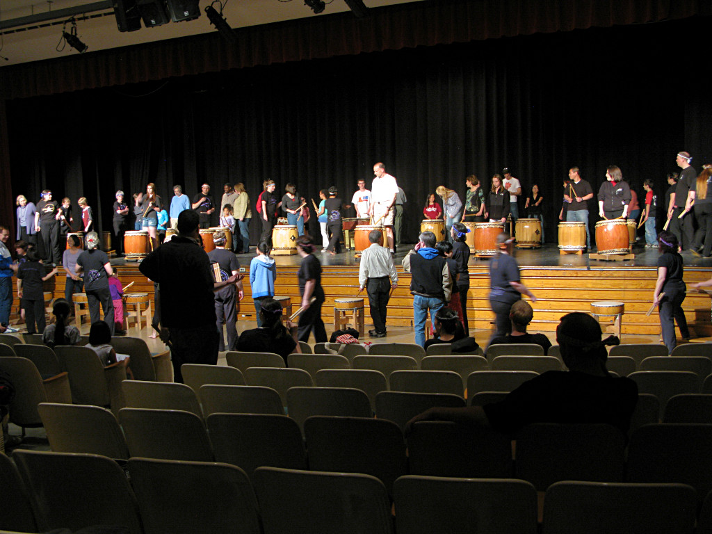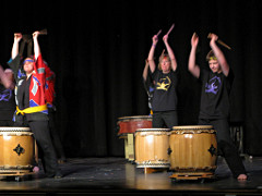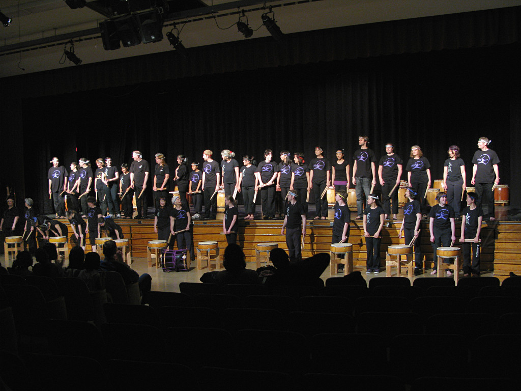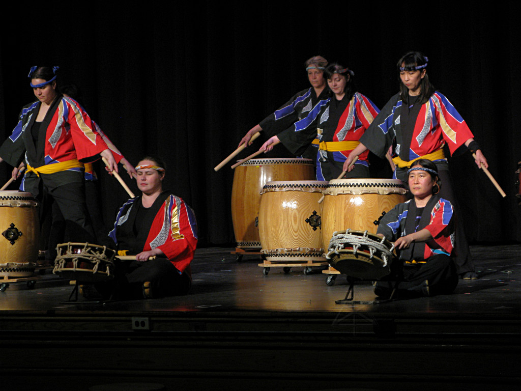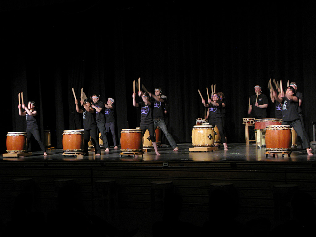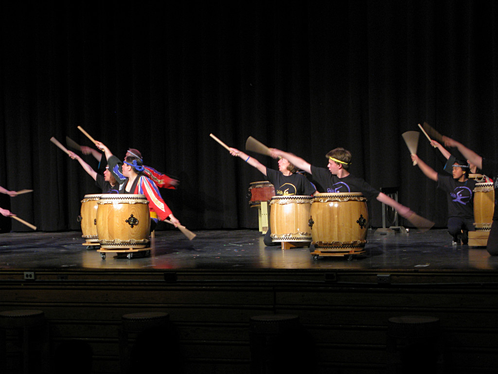 | Odaiko New England's newest big drum is presented, and everyone gives it a hit! | |
