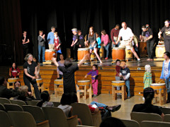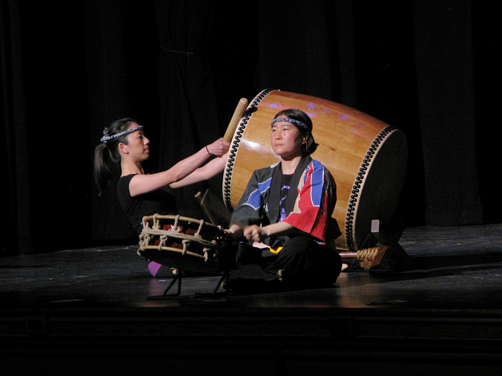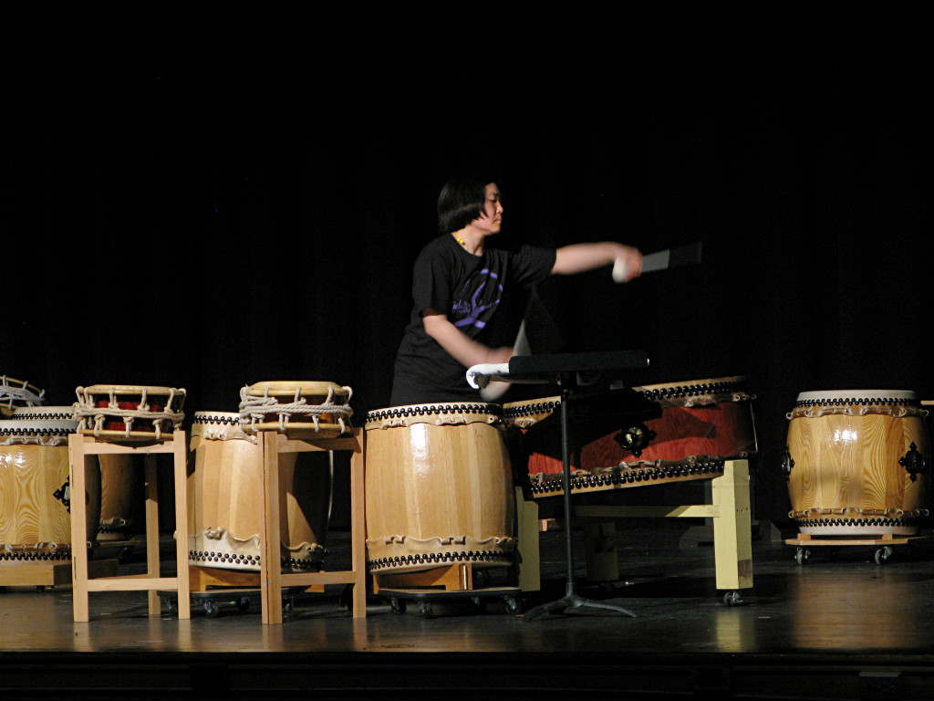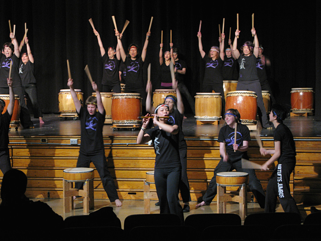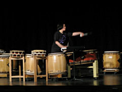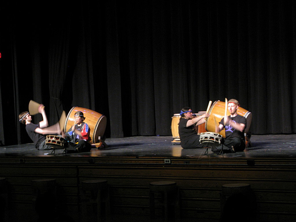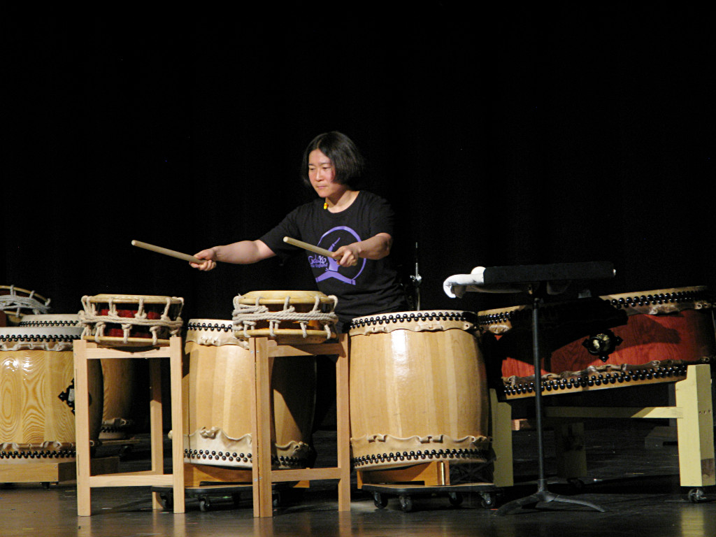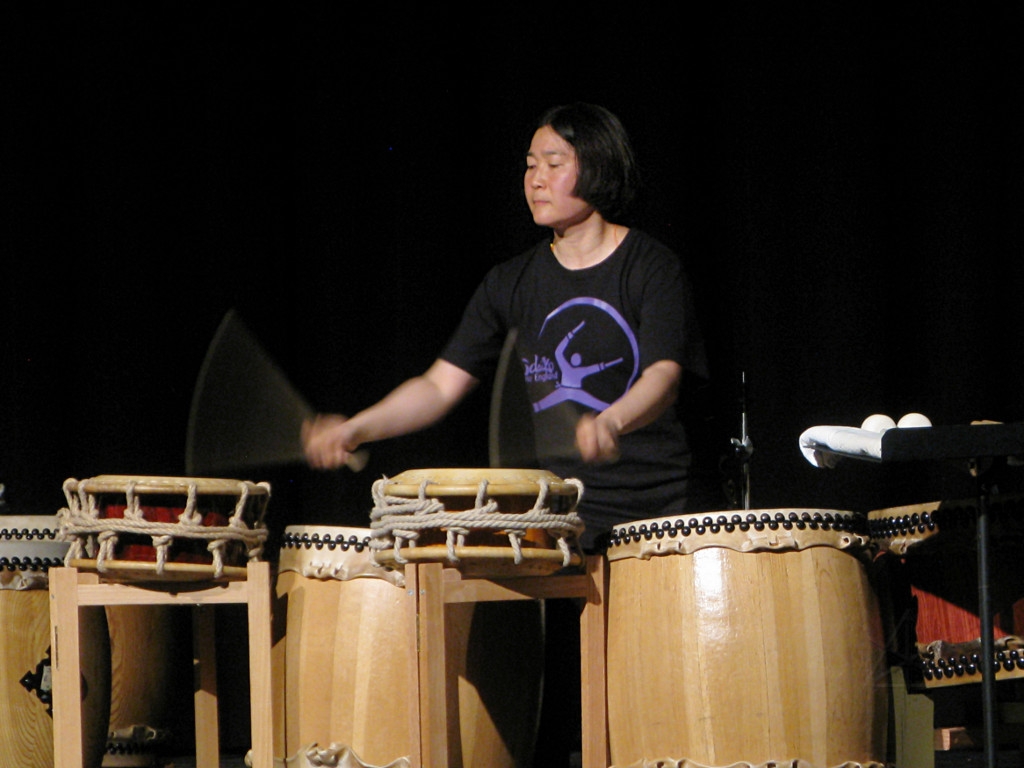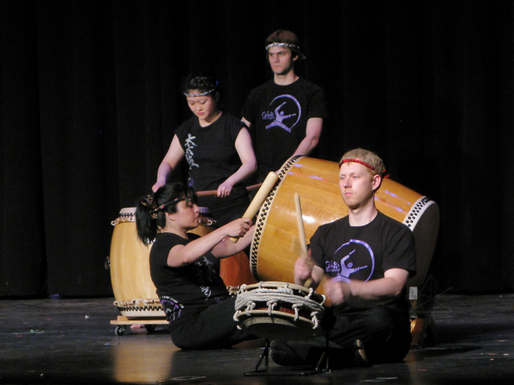 | Odaiko New England's newest big drum is presented, and everyone gives it a hit! | |