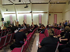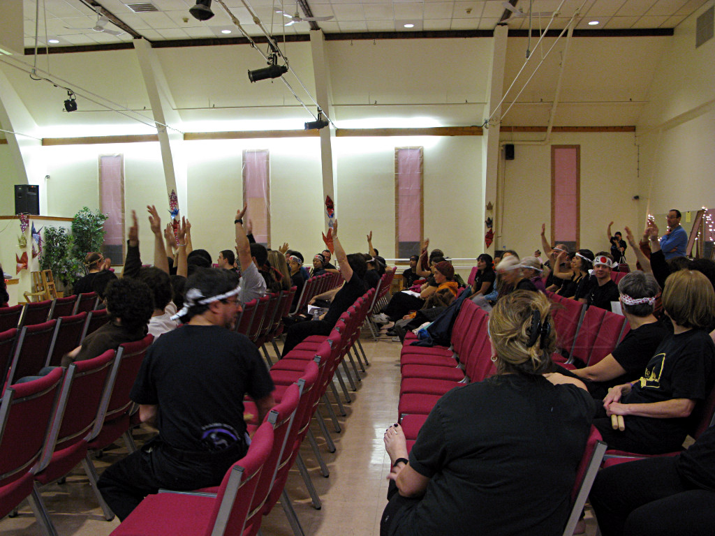 | Mark gets everyone in a big circle, thunderous levels of kiai happen ... | |