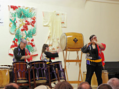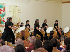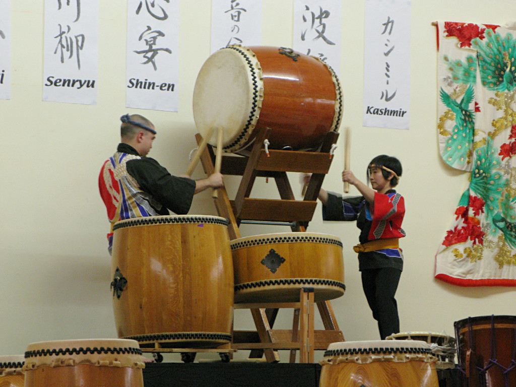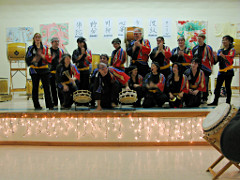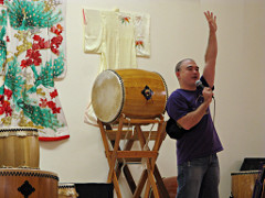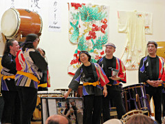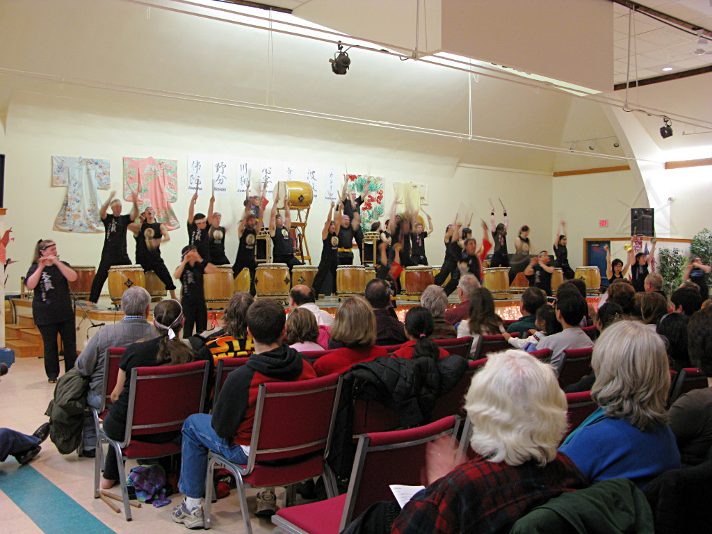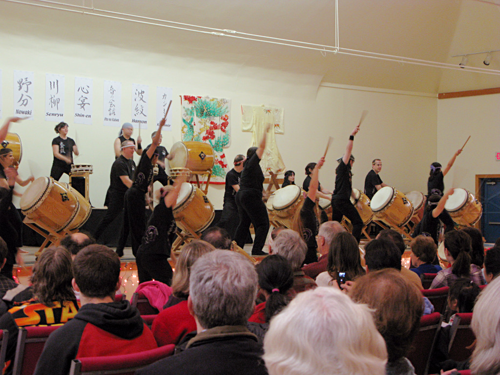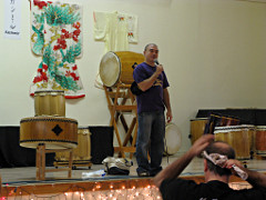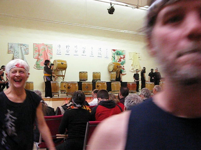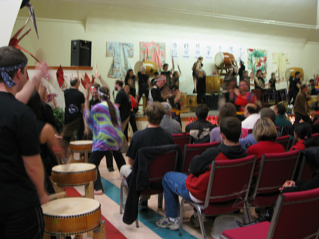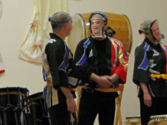 Since I'm in this, I couldn't shoot pictures so I left the 'cam running on two-second timelapse and figured I'd get what I'd get. These are smaller as they're effectively still frames from a movie file at a fixed zoom. Changes to the piece were amusingly interleaved with our rehearsals, up to the very end. People contributed photographs of musical notation, kuchishowa, and whatever they could for at-home practice references. Here is what I cooked up in GarageBand on a Mac to try and help -- a representation [in stereo!] of how our entire piece would run, using the synthesized drum-kits in the software.  |