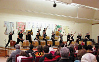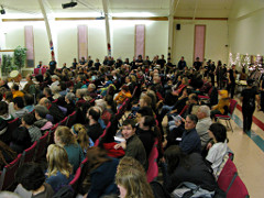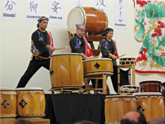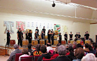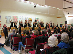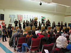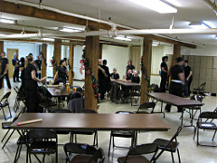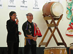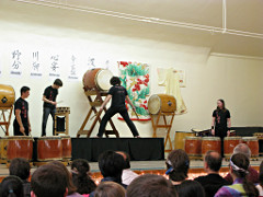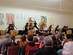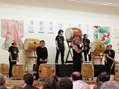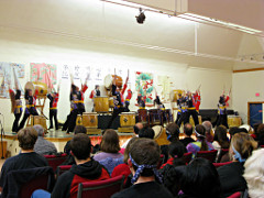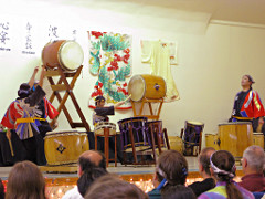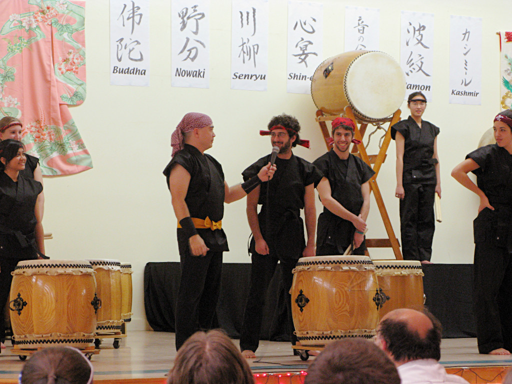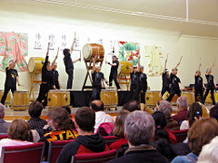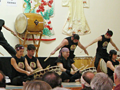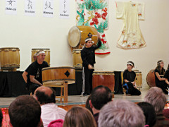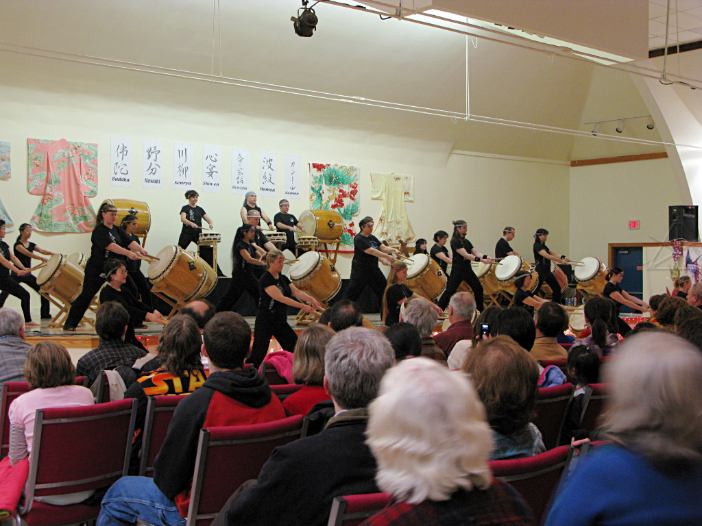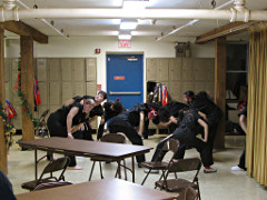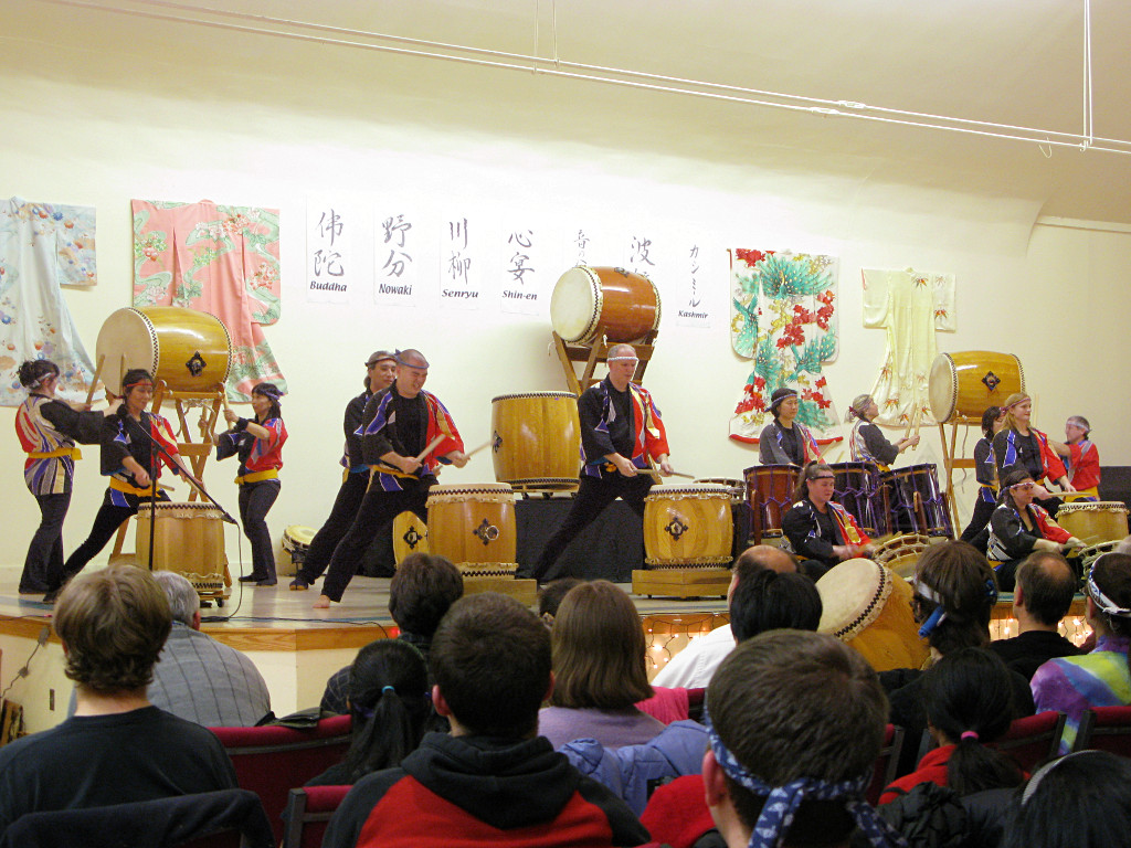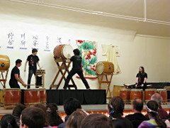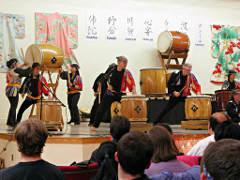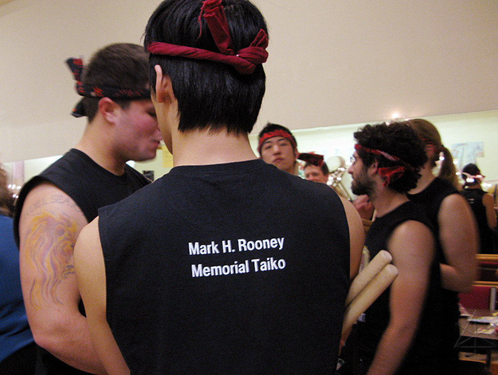 Since I'm in this, I couldn't shoot pictures so I left the 'cam running on two-second timelapse and figured I'd get what I'd get. These are smaller as they're effectively still frames from a movie file at a fixed zoom. Changes to the piece were amusingly interleaved with our rehearsals, up to the very end. People contributed photographs of musical notation, kuchishowa, and whatever they could for at-home practice references. Here is what I cooked up in GarageBand on a Mac to try and help -- a representation [in stereo!] of how our entire piece would run, using the synthesized drum-kits in the software.  |
