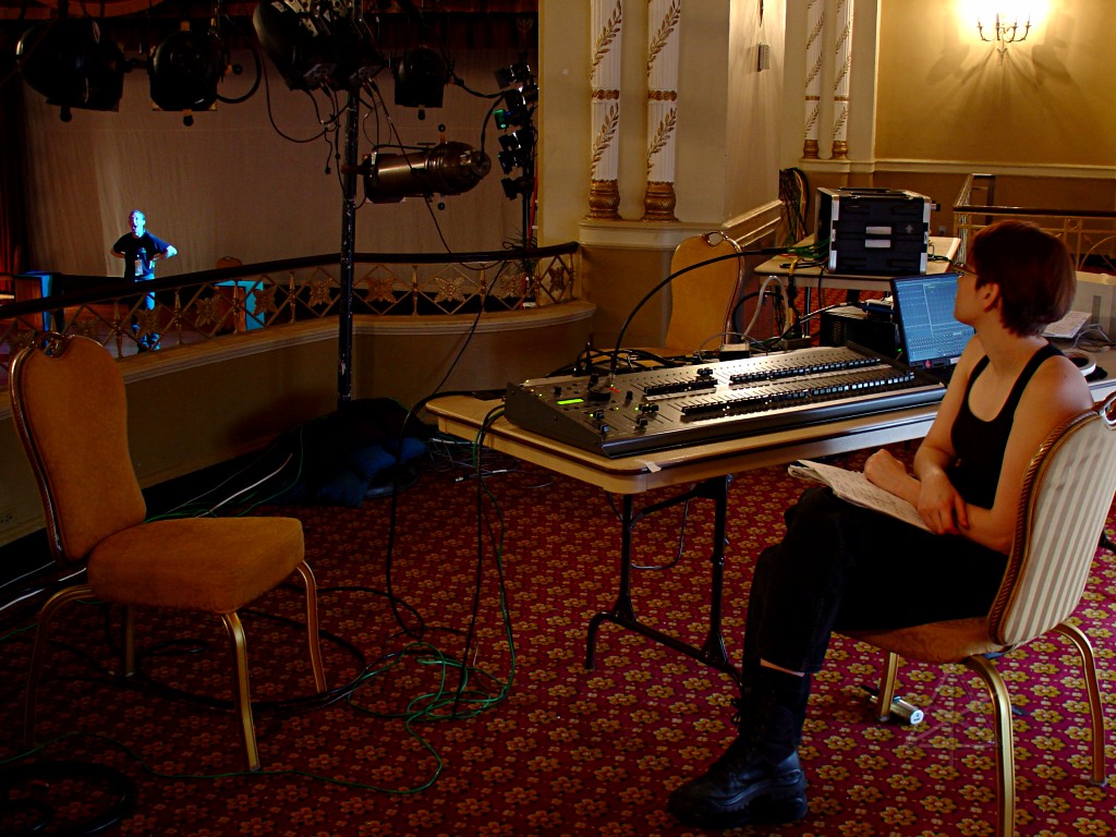 DSC02421-wigalign01.JPG aligning wiggle-lights to the dance floor DSC02428-val-n-trim.JPG Val at the board, Trimmer on the stage