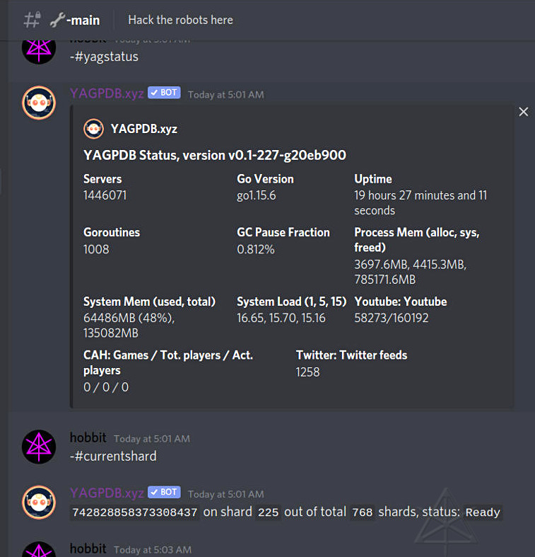 If we look at some basic bot stats, the volume of a popular one like YAGPDB
