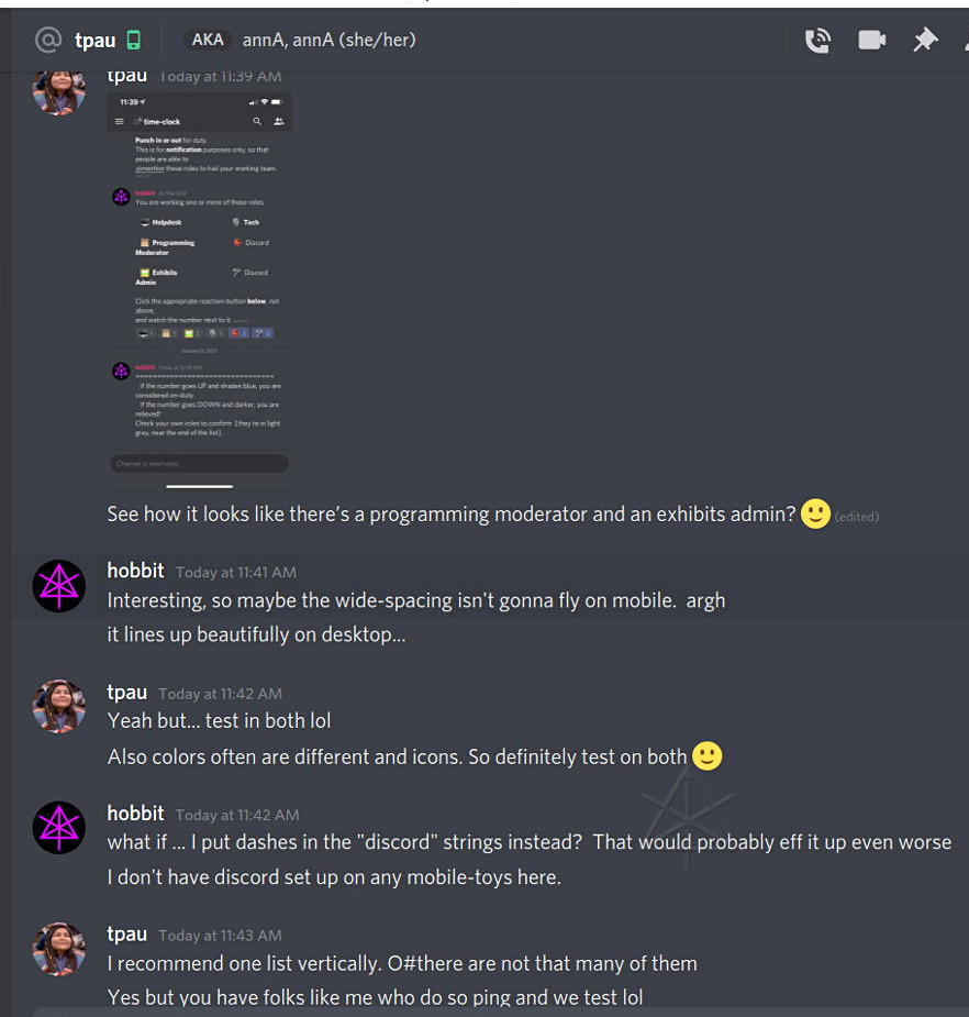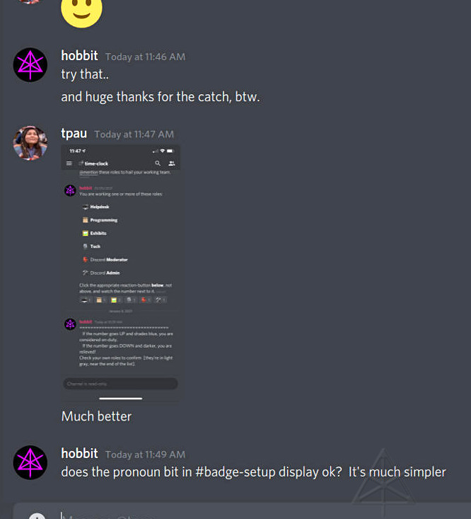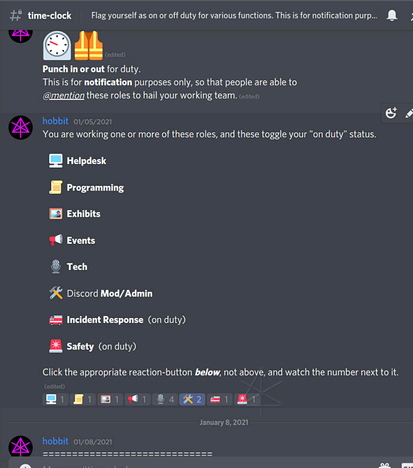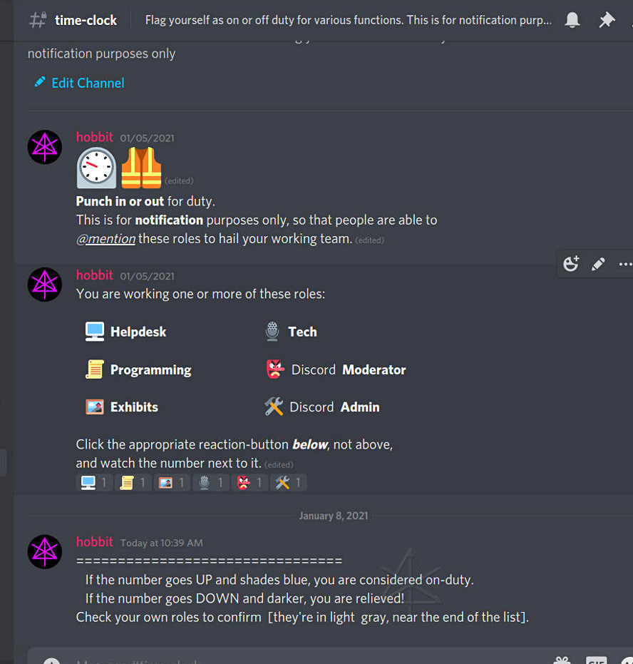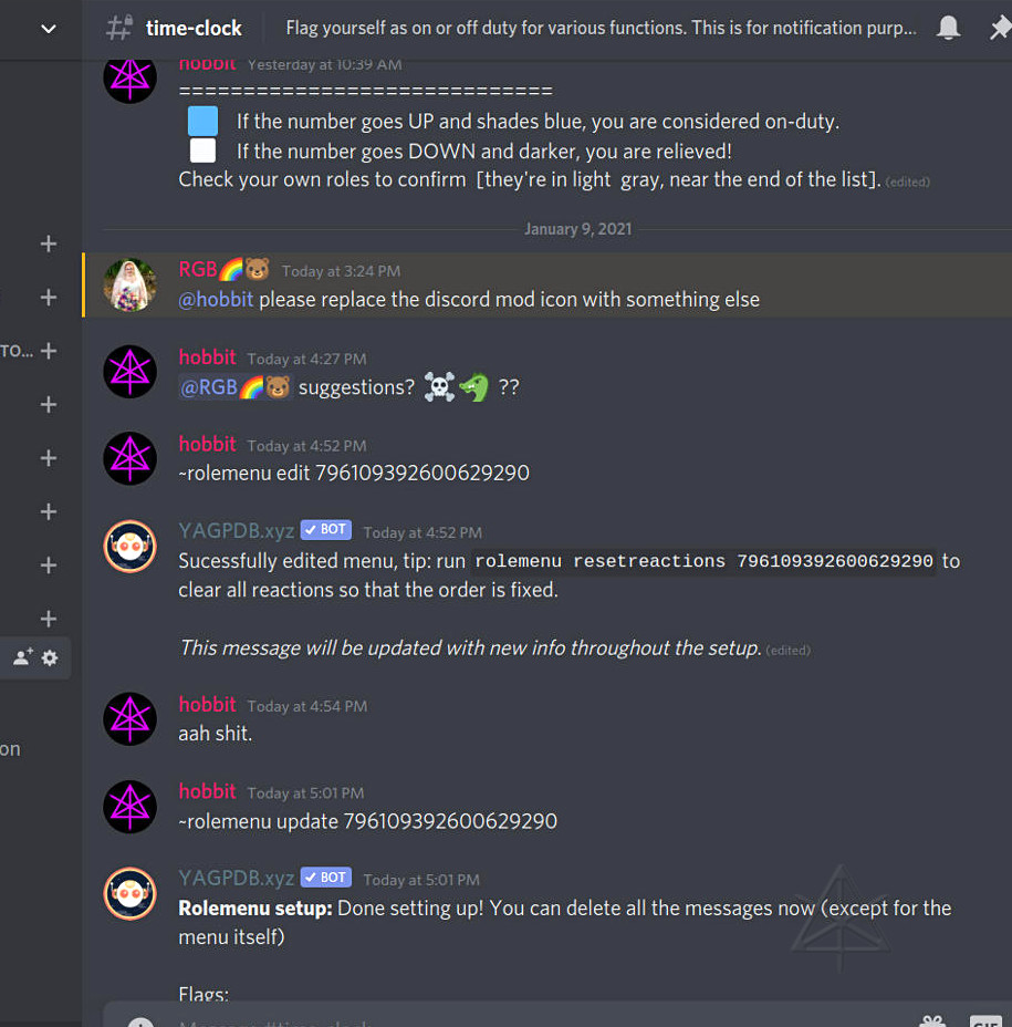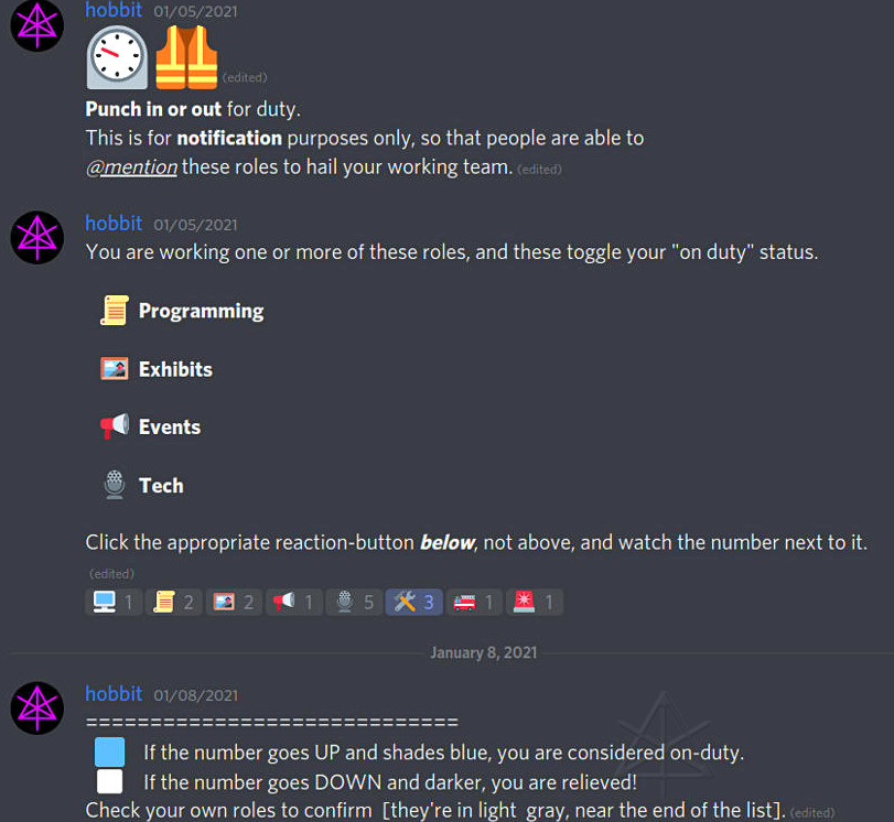 To facilitate self-service for said on-duty-ness, I constructed a role-menu