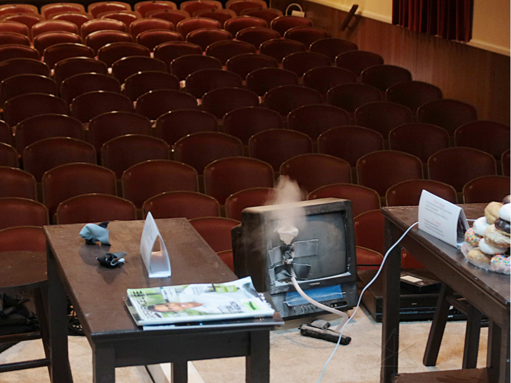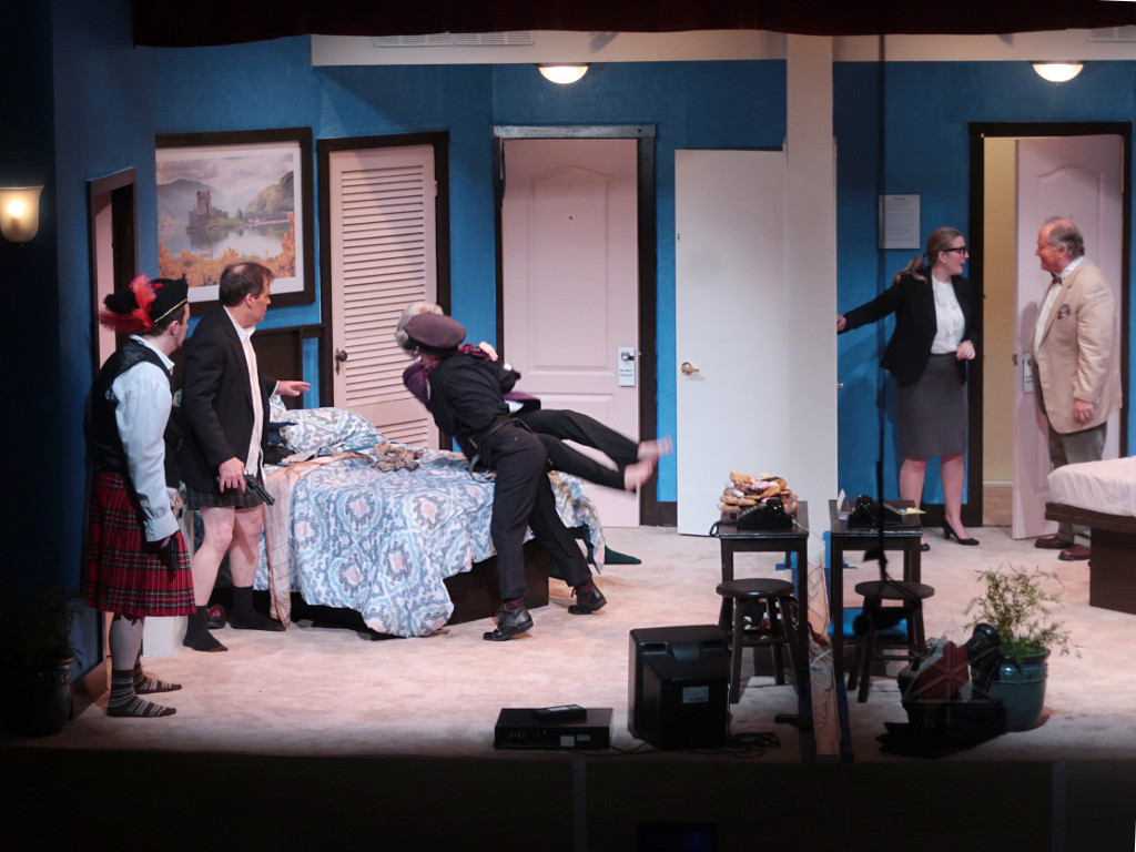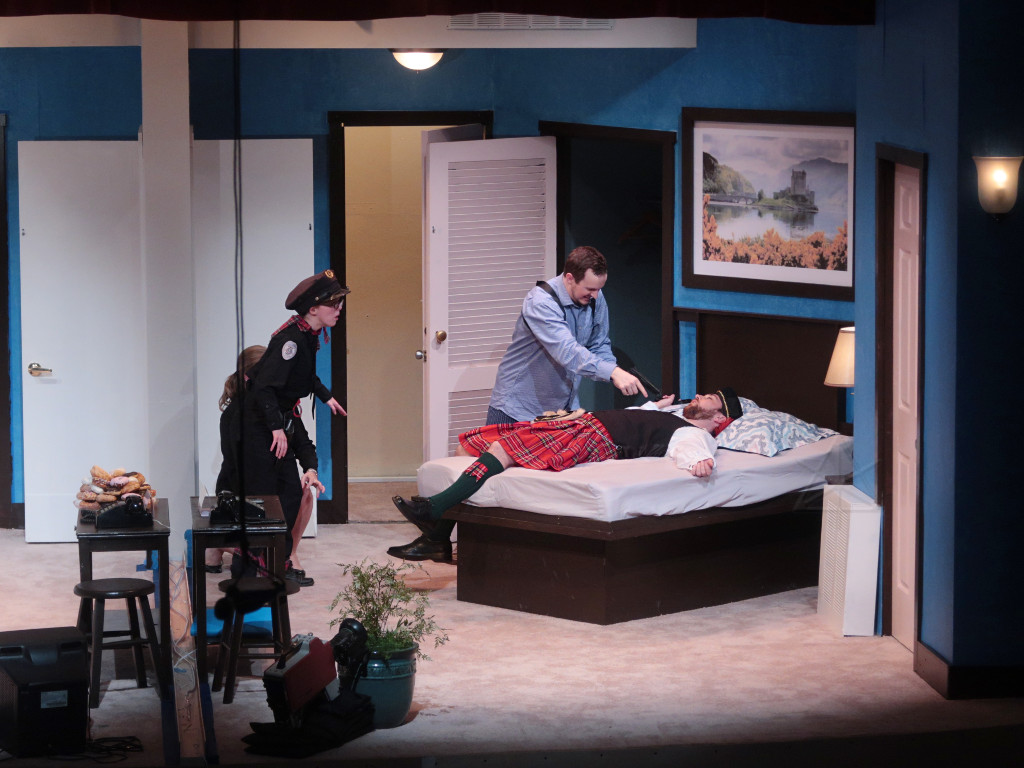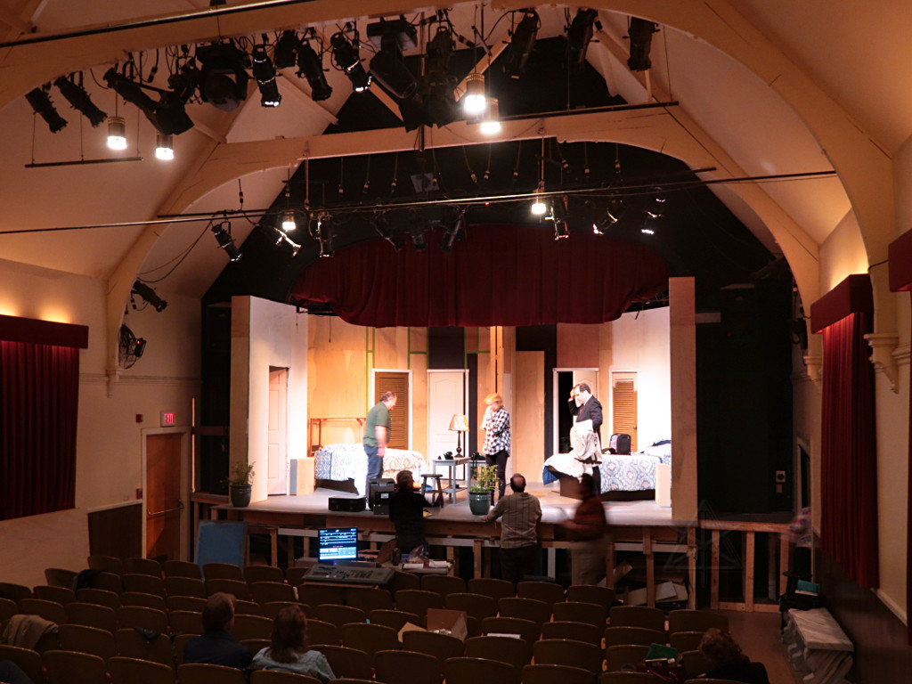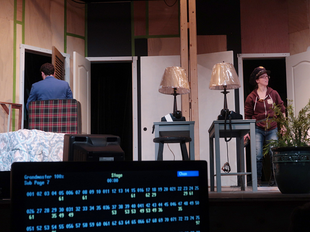| A production-tech colleague recommended me to the Arlington Friends of the Drama as someone who might be able to help with lighting their Spring 2018 show, a lively cops-n-baddies comedy called Unnecessary Farce. It seemed like a nice opportunity to get in on a community-theatre project at a design level again, as it had been some time since I'd done that. As the show's director noted at the very first production meeting, the actors do all the heavy lifting in this one and lighting was about the simplest aspect of the whole thing -- it could easily be as little as four or five cues, a generic wash up/down for each act. Perhaps appropriate for my first go in a new space, but I found some fun subtleties to tackle and additional areas to get involved in as things progressed. |