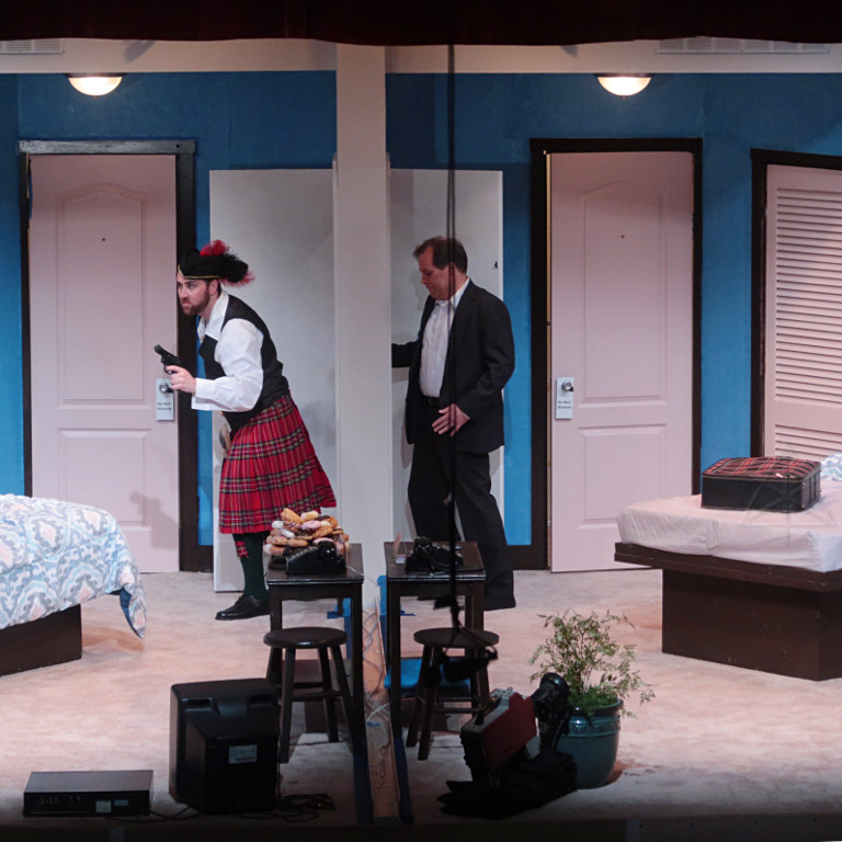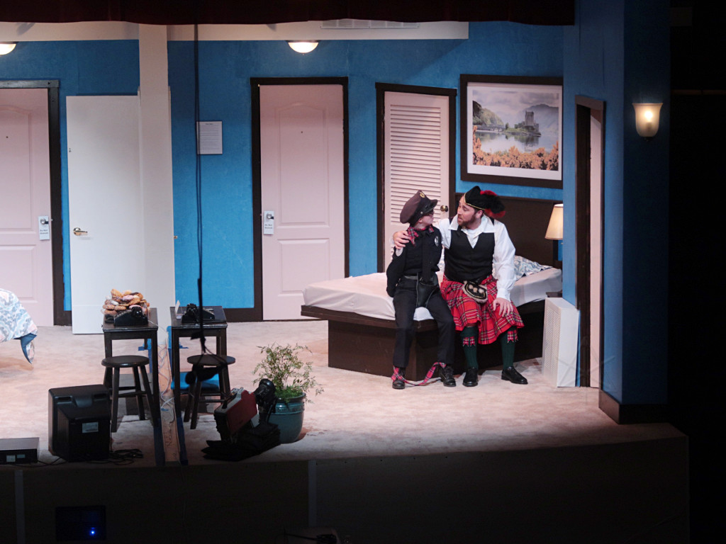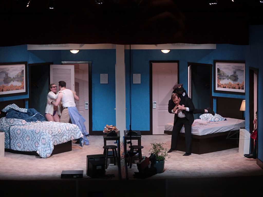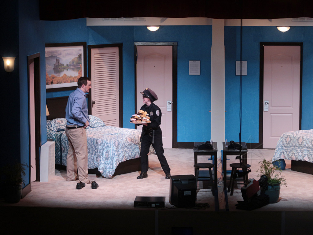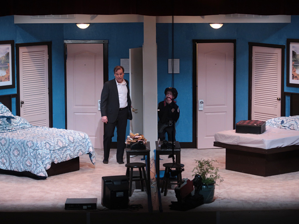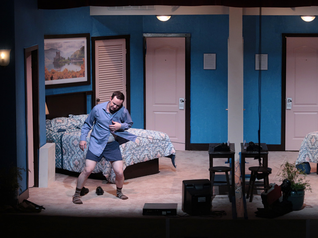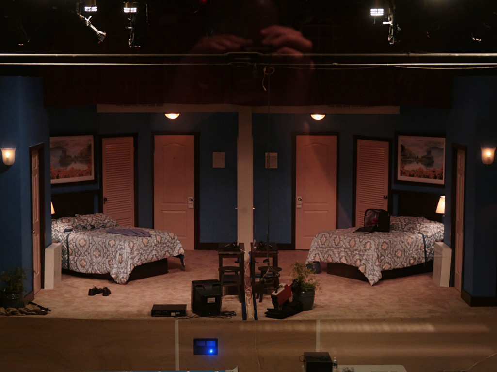 The set is two rooms in a second-rate roadside motel, but without a physical