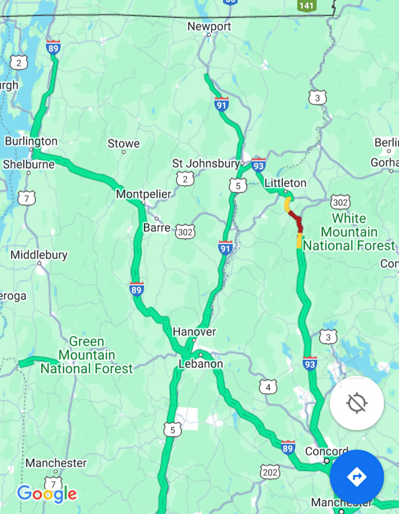 than a bit of a squeeze through Franconia Notch where it goes down to one