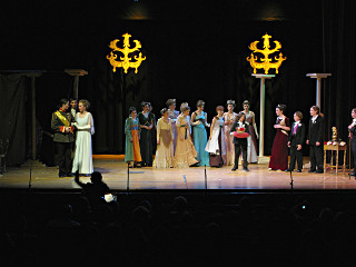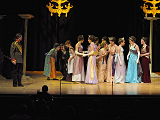 | Enter the Prince, who joins his circle of aspiring brides. | |