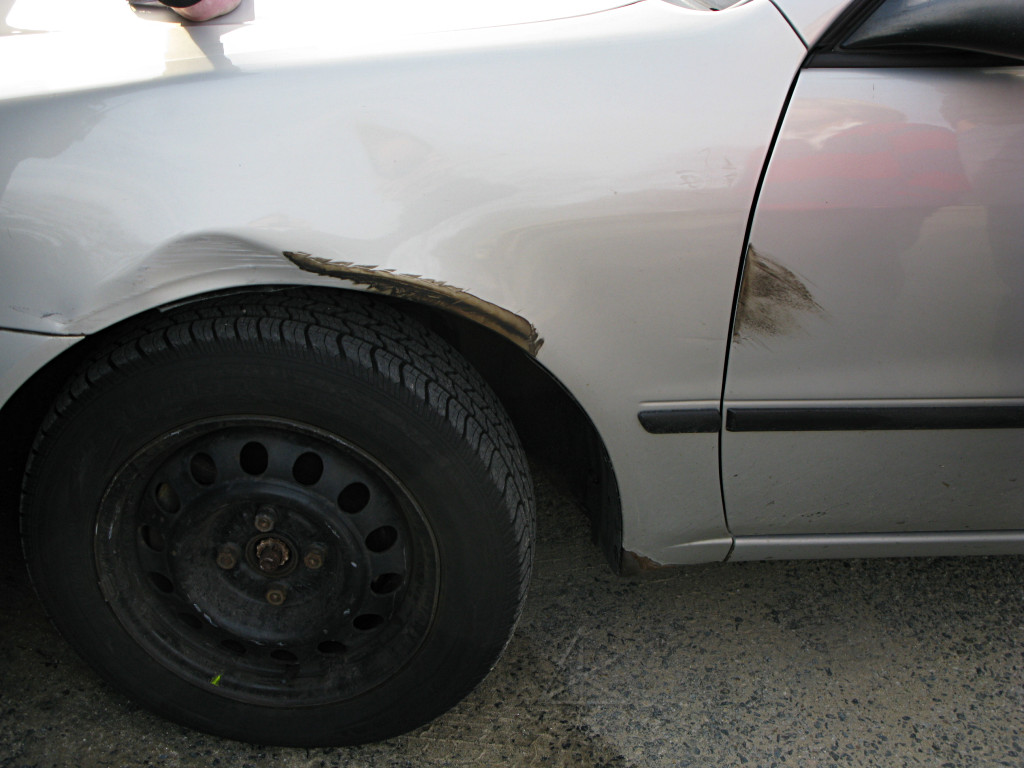 On March 6 2008, shortly before 3pm, I witnessed a minor collision between a yellow / white FJ Cruiser and a silver Corolla, after which the FJ driver left the scene with the Corolla in pursuit with its driver attempting to get the FJ driver to pull over and resolve the situation. The incident occurred in a stream of traffic turning left from Route 125 onto the combined Route 125/114 south/east bound in North Andover, where the Bertucci's restaurant is. I viewed the collision in my rear-view mirror, after which both vehicles passed me going southeast on 114 past Merrimack College. I was waiting to leave the Bertucci's lot via its southeastern access, and needed to turn left onto 114 south myself. There is a left-turn lane for that, but it was a busy period in the day and as I waited, many cars arrived into the left-turn lane and nobody would make a hole for me, so I was blocked from getting across the straight-ahead lane. While waiting, I specifically noticed the FJ Cruiser arrive into the same pack, due to its bright color and a particularly abrupt, jerky driving behavior as it came to a stop. I still needed to reach 114 southeast, so with a solid wall of cars blocking any hope of reaching the left-turn lane I pulled out into the empty straight-ahead lane, proceeded slowly up to the light at the intersection with my left blinker on, and squeezed slightly over toward the left-turn lane as I arrived in the hope of letting other traffic pass by on the right if it needed to. When the light turned green for the left I waited for a few vehicles to make their left beside me, to try and express good will about ordering and right of way, and then made my own left toward the far lane on 114 and proceeded southeast. Note that there is one left-turn lane here, but two lanes southeastward on 114 so there was plenty of room for everyone to turn left without interference regardless of which lane on 125 they start from. I wasn't in anyone's way, and traffic flow remained smooth through the left turn. All this is somewhat irrelevant to the incident itself, but helps to place me at the time of the incident and detail that the intersection is very wide without any sort of restriction to traffic flow. One left-turn lane into two travel lanes is plenty of room for everyone. I was well clear of the intersection and proceeding away from it when the incident occurred. A rapid movement in the rear-view mirror caught my eye for a moment, and I watched in some amount of horror as that same yellow FJ Cruiser swerved and slammed sideways into a silver Corolla to its right, pushing the Corolla into the roadside curb momentarily. This occurred in the right-hand travel lane on 114. I could not imagine how the FJ even managed to hit the Corolla across all that distance, but it did. I even *heard* the impact through my mostly closed car windows. I was perhaps 200 feet away down the road by then. With nobody near me in front or behind I continued southeast at a low to medium speed, keeping an eye on what was happening behind me in the rearview, and was astounded to see the FJ veer abruptly away from the Corolla and accelerate for the left travel lane. My immediate thought was that it was leaving the accident scene and was about to be in much bigger trouble than from simply causing a fender-bender. As it drew parallel with where I was in the right lane, I OPENED MY DOOR a little and POINTED straight at the FJ driver and toward the roadside, trying to indicate as clearly as possible that it shouldn't be driving away but pulling over to resolve the situation. I cannot remember if the driver looked at me or not; it was hard to see due to daylight glare on the windshield anyway. The FJ roared past me, and shortly behind came the Corolla which had recovered, was still driveable, and whose driver was now realizing he had been seriously wronged. As a witness to the serious aggressive action on the part of the FJ, I felt that it was appropriate to try and help in as safe a manner as I could. As both vehicles passed by me I sped up a little and joined the group at the back, hoping they would pull over soon and exchange paperwork and take my statement. But the FJ kept going, moving to the right lane ahead of me and bearing right onto 125 south where 114 and 125 split again at the next intersection. I had a camera in the glovebox, so I pulled it out and continued following the group and tried to get a clear shot of the FJ. Unfortunately the Corolla was very close behind, with its driver waving his arm out the window pointing to the side of the road, so with blockage and motion blur from full zoom-in I could only get a partial plate. I didn't want to get too close to the pair since the FJ could easily have done another reckless action. My intent was to try to get a clear picture, stop somewhere safe, and then call 911. I continued down 125 behind the group; we were all doing about the posted speed limit of 50 MPH through the stretch. As we neared Salem Street at the blinker and Getty station, the FJ went to turn left and the Corolla followed, through a fortuitous gap in opposing traffic. I followed but had to wait for another opposing car or two, which placed me farther behind. Once in the neighborhood that Salem St passes through I rapidly lost the group because the FJ continued down the residential streets at high speed, and as I spotted the kids and dogs and whatever else out on the streets there was no way I was going to compound the errors by blasting through there endangering life and limb like the FJ driver apparently thought nothing of doing. I pulled over and stopped and checked the pictures on the camera, realizing that I hadn't gotten any really crisp shots. I would have called 911 right from there but my cellphone was apparently in a totally dead area and off its network. As I reviewed the pictures I was astounded to see the FJ coming back the other way, heading back out of the neighborhood! It was around a slight curve a