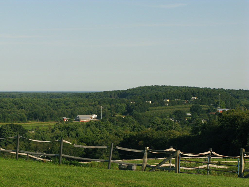 The flat blue area is the ocean. Nice to see some windmills spinning, too  |